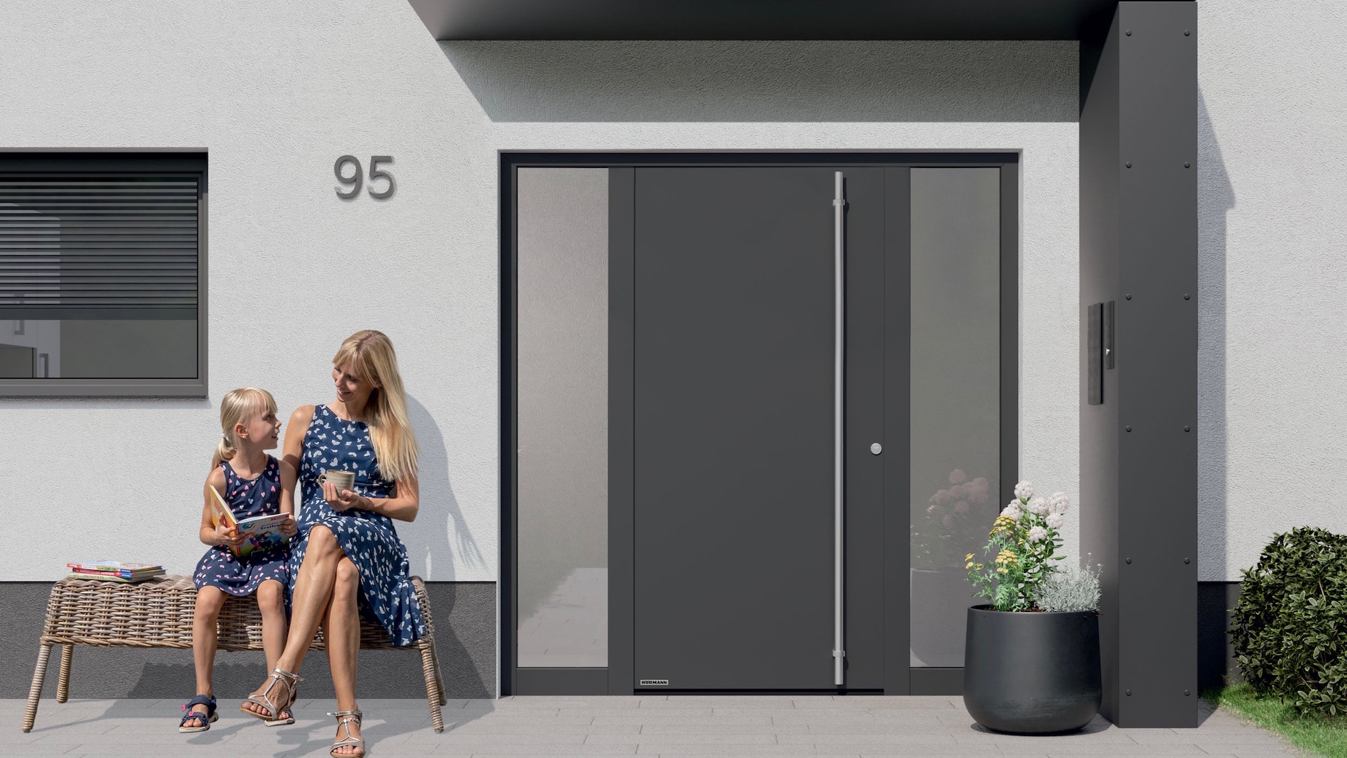 La nuova porta Hörmann può essere dotata a richiesta di un lettore di impronte digitali o tastiera per l’inserimento del codice, e per una proposta ancor più smart, può essere aperta sia dall’esterno che dall’interno tramite sistema radio BiSecur, ricevitore Bluetooth e smartphone con app Hörmann BlueSecur.