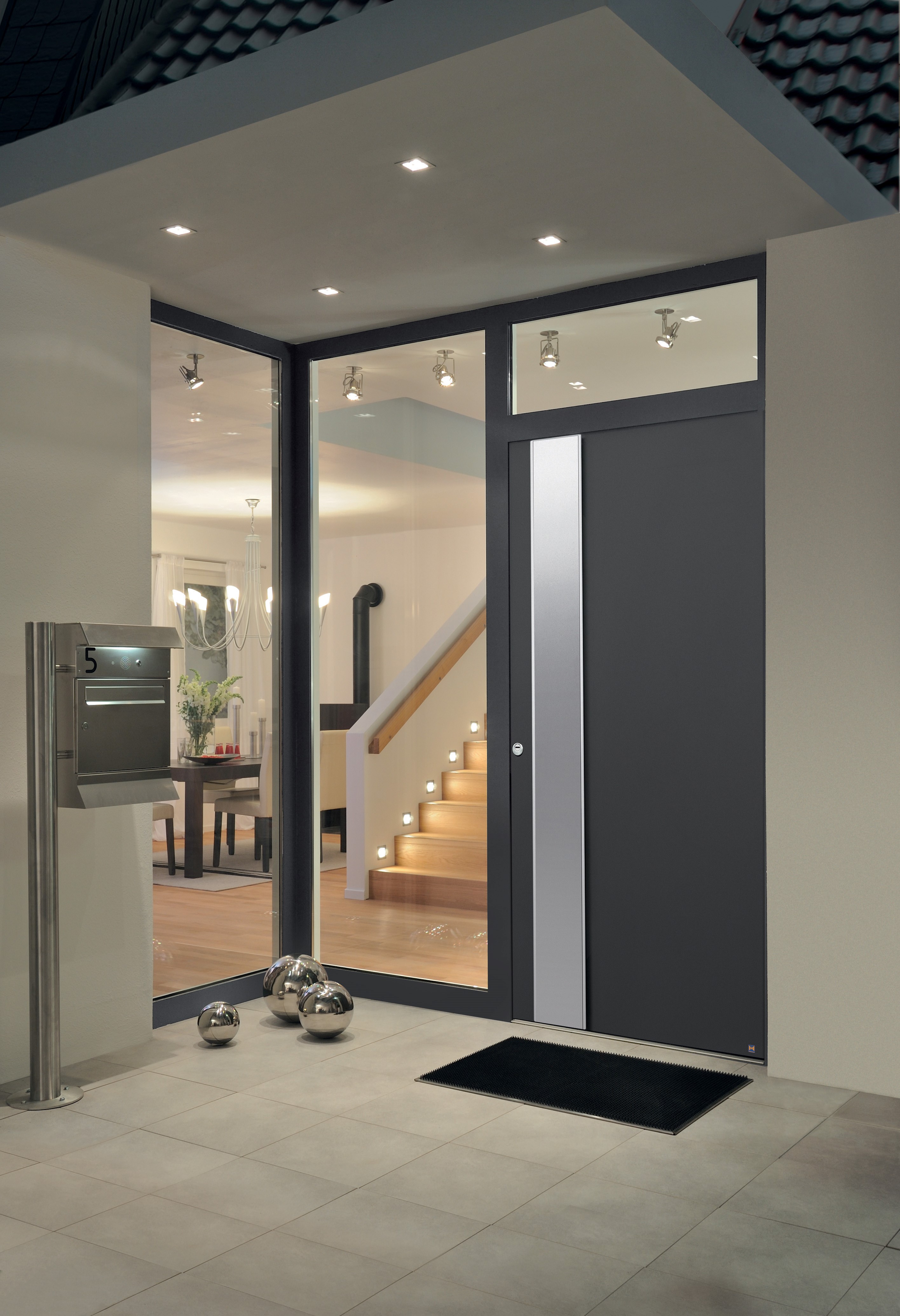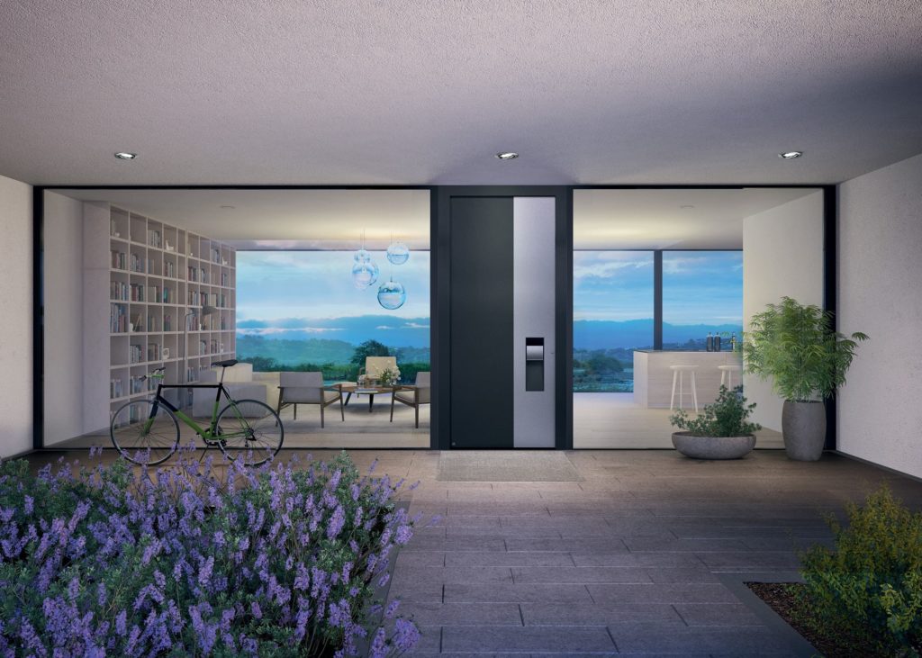 Frutto di una avanzata ricerca nel settore, Hörmann propone la nuova porta d’ingresso in alluminio ThermoSafe, sinonimo di innovazione tecnologica, affidabilità e sostenibilità, che coniuga prestazioni energetiche elevate con un’ottimale sicurezza antieffrazione. Grazie al massiccio battente complanare in alluminio – spesso 73 mm, con infrastruttura metallica – e al telaio sempre in alluminio spesso 80 mm, entrambi a taglio termico e a doppia superficie di battuta, ThermoSafe raggiunge un valore di trasmittanza termica fino a 0,8 W/m²xK ed è quindi in grado di soddisfare appieno i requisiti delle porte d’ingresso utilizzabili nelle case a basso consumo energetico.