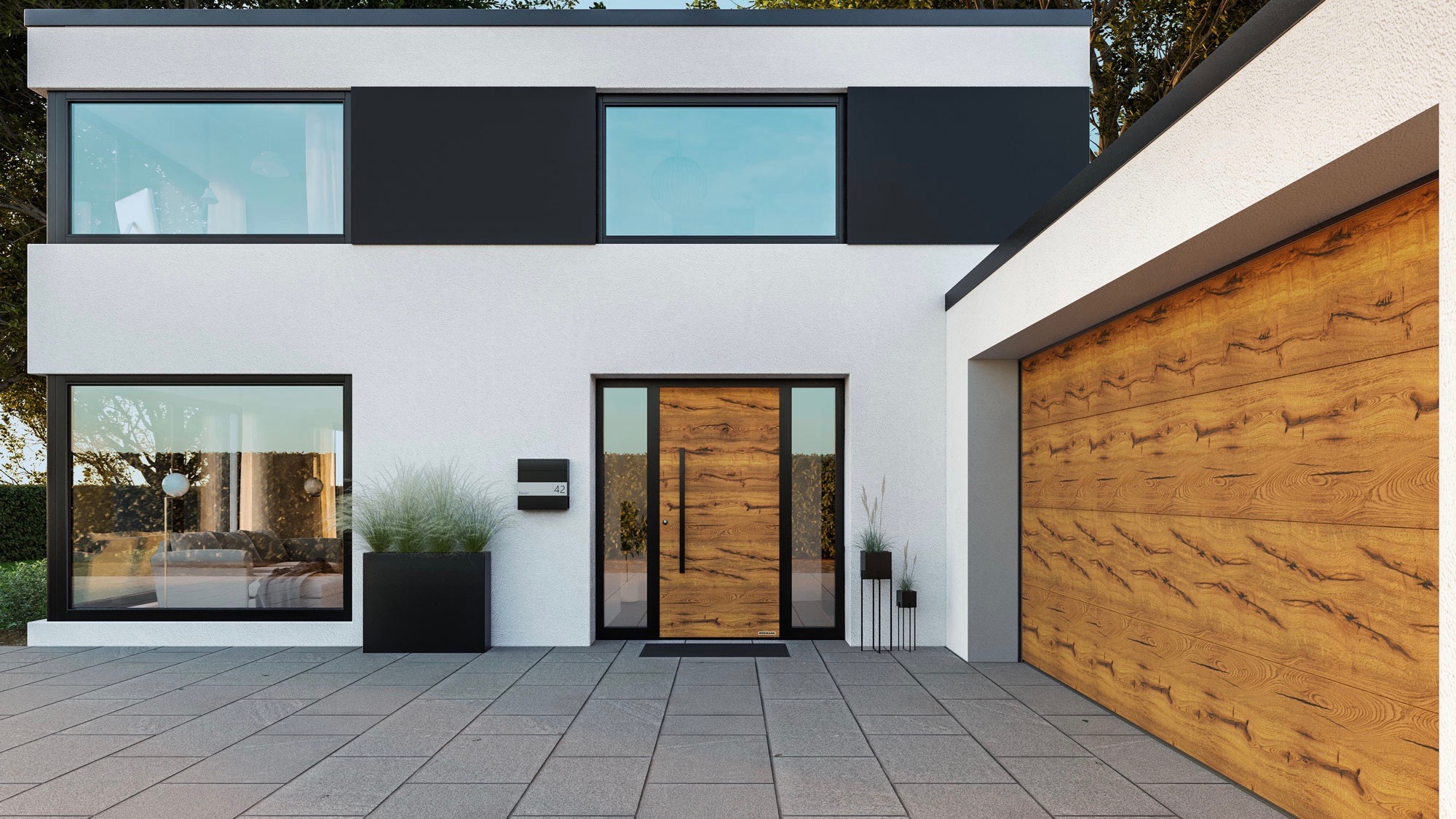 Hörmann. Porta d’ingresso e del garage dall’estetica coordinata