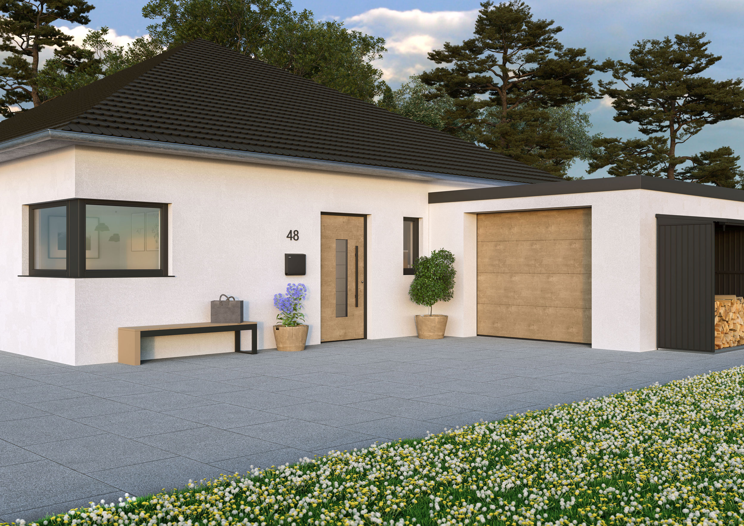 Per offrire la possibilità di rendere le facciate ancor più gradevoli e armoniose, soprattutto a quanti optino per spazi residenziali che mostrino porta d’ingresso e porta da garage in un unico panorama visivo, Hӧrmann propone da sempre finiture coordinate per entrambe le chiusure.