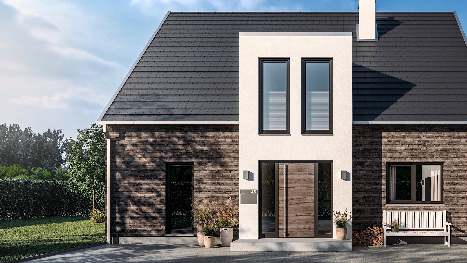 La porta d’ingresso ThermoSafe Decoral è una delle novità Hörmann: il nuovo modello presenta eleganti telai neri che incorniciano le finiture, contraddistinte da un effetto materico e trasferite sulla superficie in alluminio verniciato della porta grazie a un processo di rivestimento brevettato.