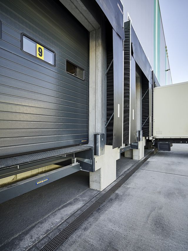 Qui è stata dunque studiata una soluzione composta da 19 portoni sezionali coibentati Hörmann SPU 67 Thermo, particolarmente adatti alla logistica alimentare e alla catena del freddo, e da 17 boccaporti prefabbricati Hörmann LHC 2 con rivestimento monoparete, per proteggere personale e merci dagli agenti atmosferici durante le operazioni.