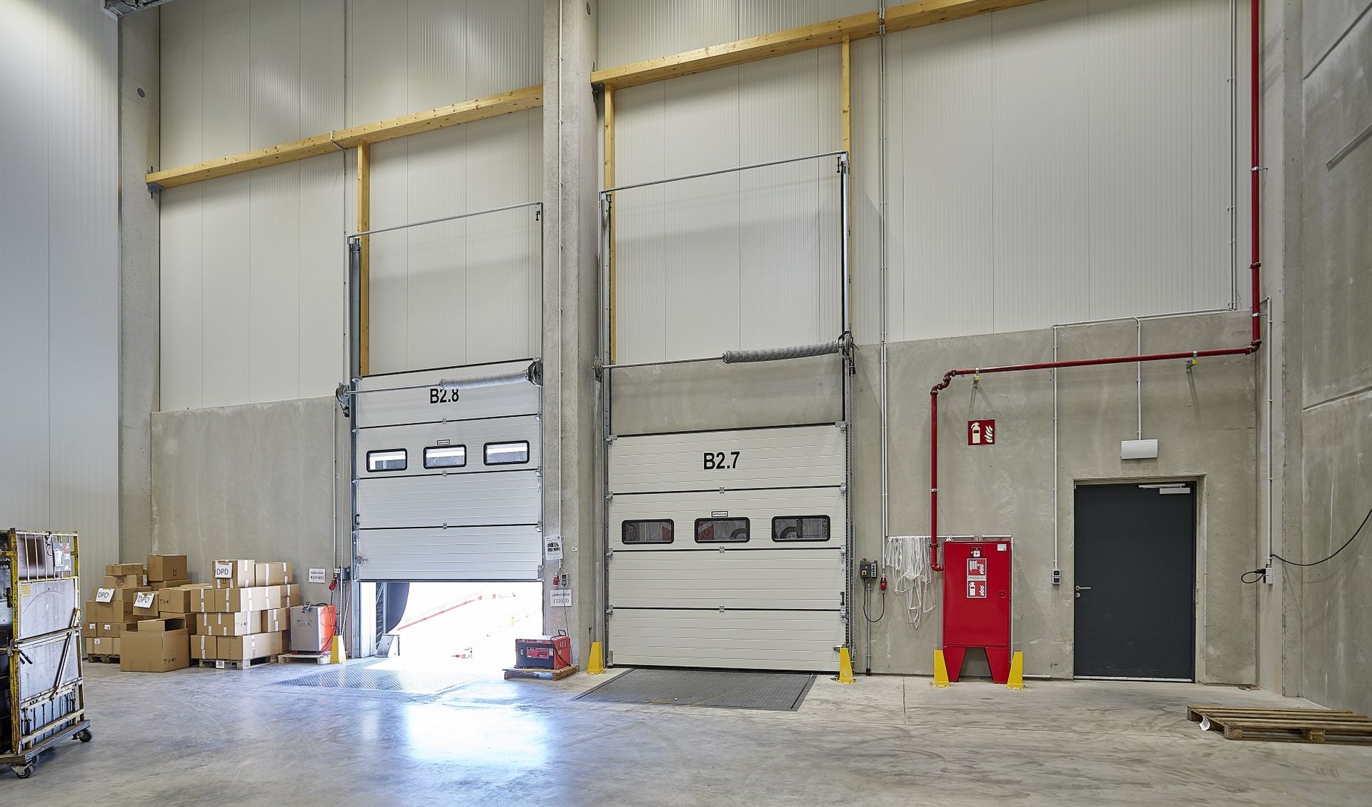 La stessa combinazione di portoni e pedane di carico caratterizza gli spazi destinati alle imprese Linde Material Handling e Fenthol & Sandtmann. In quest’ultimo caso il magazzino ospita materiali pericolosi ed è stato realizzato con requisiti antideflagranti.