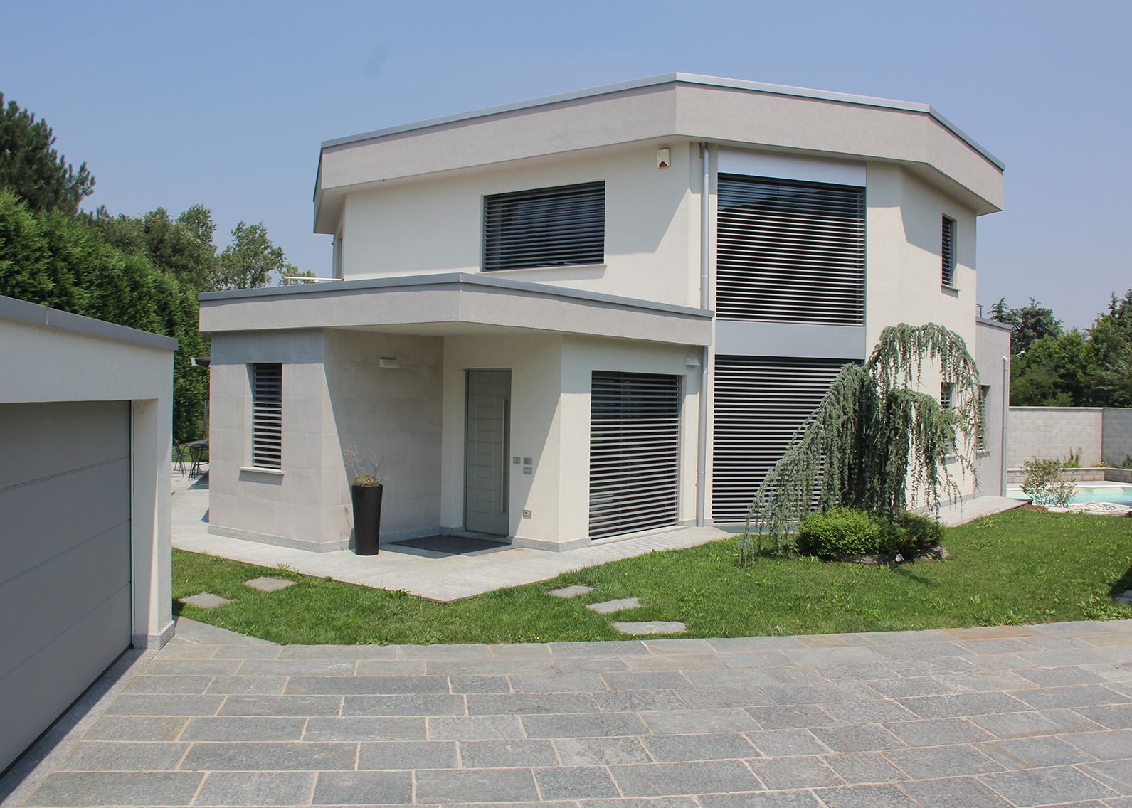 La residenza indipendente a Inveruno (Milano) è stata realizzata con tecniche costruttive tradizionali, quali strutture portanti in calcestruzzo armato e murature in laterizio. È una costruzione che si distingue per l’attenzione al contenimento dei consumi energetici, per l’elevato grado di comfort degli ambienti e per l’uso delle fonti rinnovabili, che concorrono alla certificazione energetica in classe A. L’involucro è isolato da un cappotto perimetrale e dispone di serramenti in alluminio equipaggiati con frangisole; un impianto fotovoltaico provvede al fabbisogno elettrico dell’edificio, climatizzato da pavimenti radianti alimentati da un sistema ibrido pompa di calore – caldaia a condensazione – collettori solari termici, più split canalizzati per il condizionamento estivo. Tutti gli impianti sono controllati da un sistema domotico.