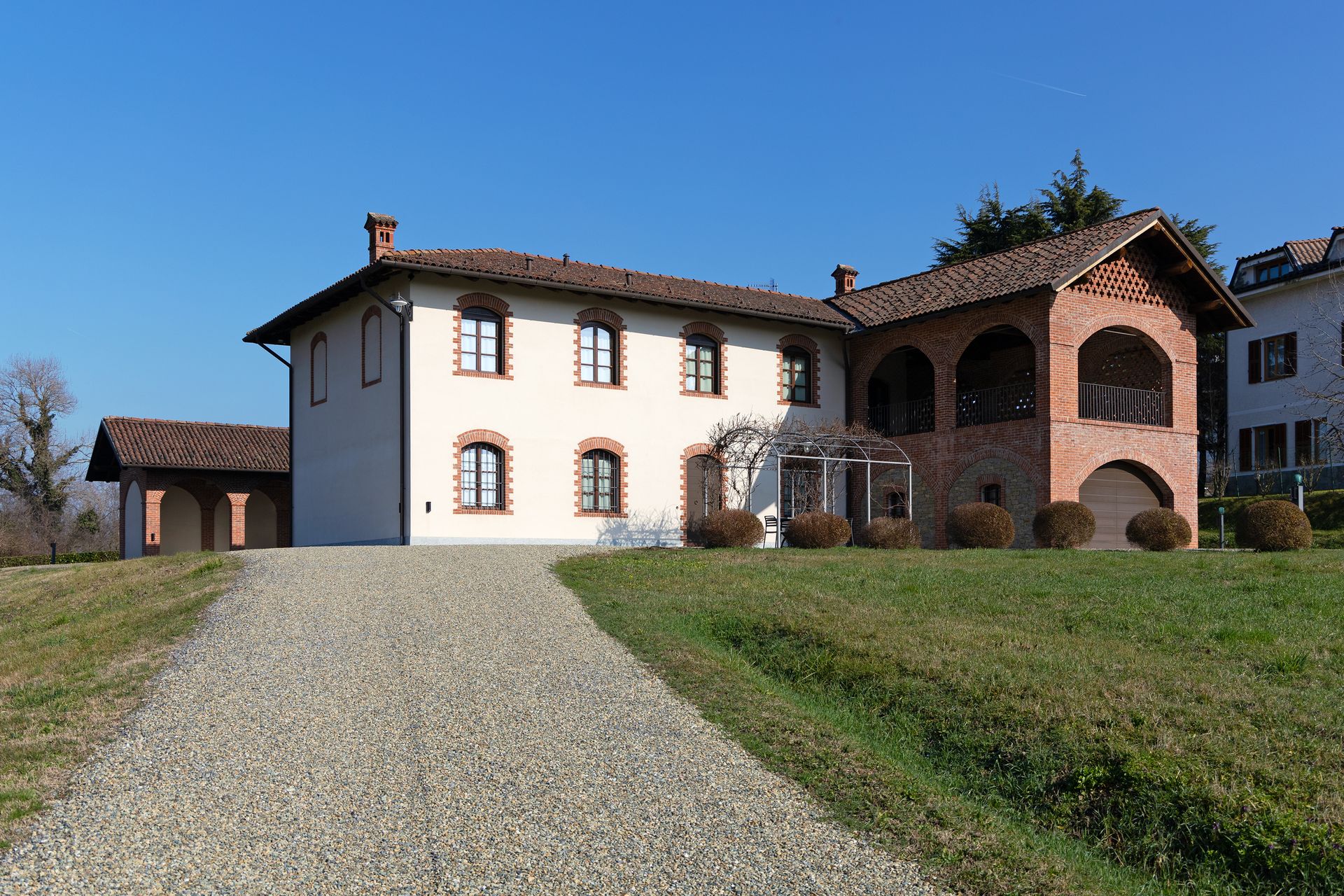 Accanto alla Villa Liberty sorge un’antica cascina, anch’essa ristrutturata una quindicina di anni fa e suddivisa in due diversi appartamenti, sempre della stessa proprietà. Pur conservando tutto il fascino suggestivo dell’antico, con le parti in mattoni a vista, il pozzo all’interno della corte e i fienili trasformati in terrazzi, la cascina rinnovata è una struttura moderna che non presenta ponti termici, è stata rivestita con un cappotto interno ed è dotata di un impianto di riscaldamento a pavimento e di un impianto solare di 18 m2. Ė, in sintesi, una struttura già molto performante e in classe A.