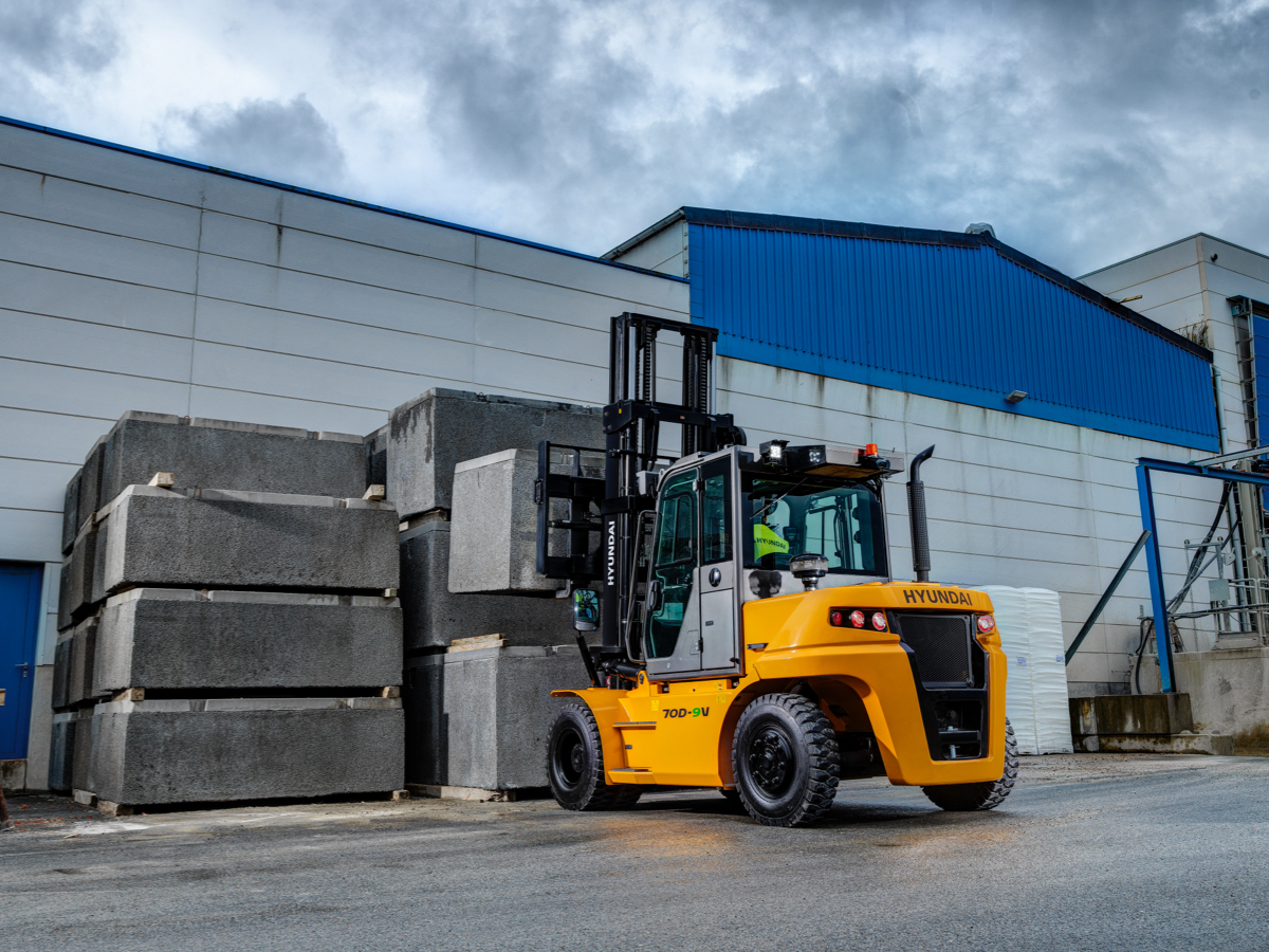 Hyundai Heavy Line è la gamma di carrelli elevatori diesel  con una cabina rinnovata, motori conformi alle normative sulle emissioni Ue Stage V e con l’opzione del sistema di monitoraggio telematico Hyundai Hi Mate.