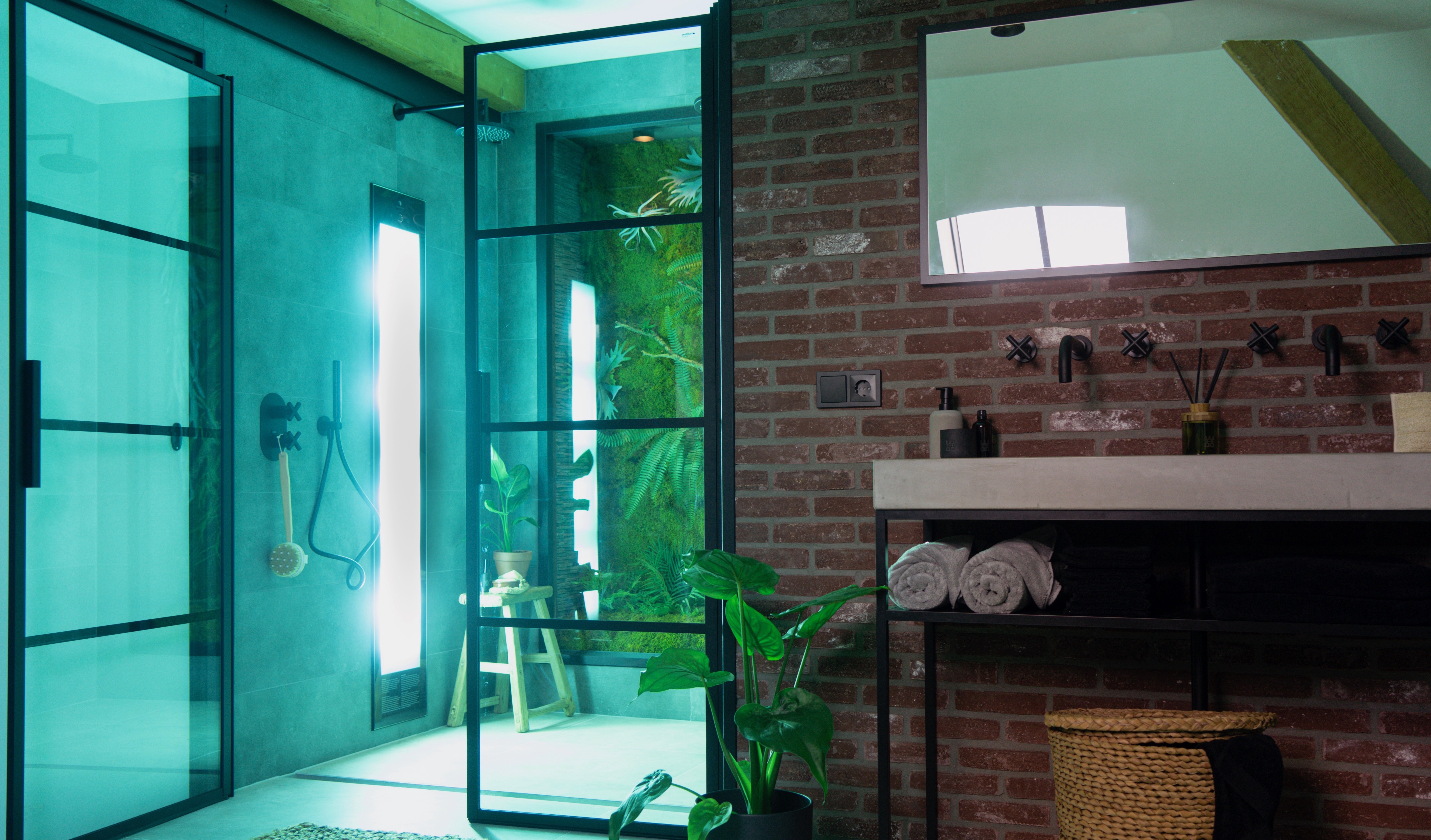 Progettato per l’uso in ambienti umidi, Sunshower è costituito da lampade che emettono sia raggi UV, che stimolano la produzione di vitamina D, sia raggi infrarossi, i quali scaldano il corpo rilassandolo e alleviando reumatismi, rigidità e dolori muscolari.