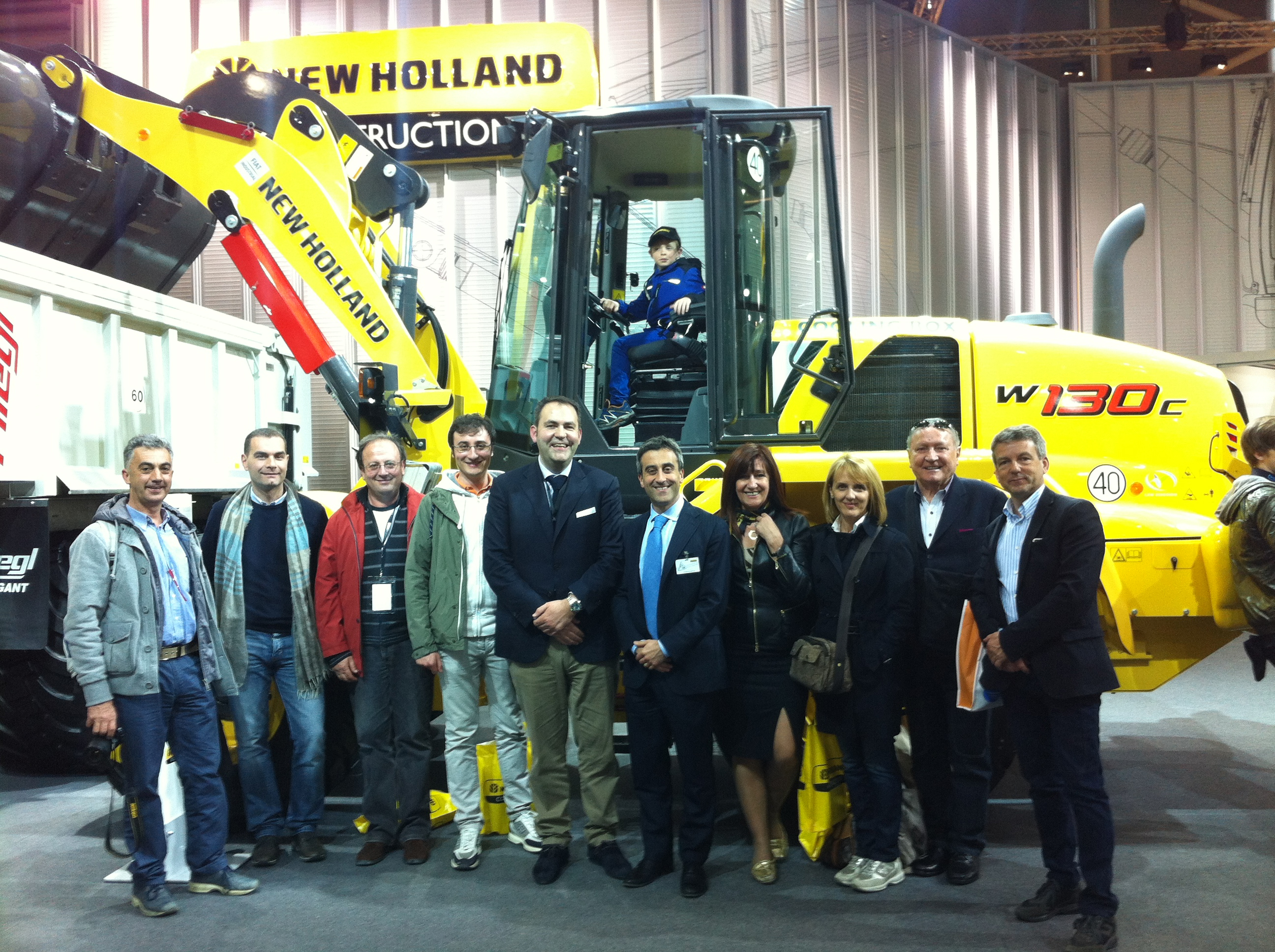 La visita organizzata dal prof. Filippo Monge, docente di marketing e presidente dei costruttori edili di Ance Cuneo, al recente Bauma di Monaco ha registrato un momento molto speciale presso lo spazio espositivo New Holland Construction. Con il presidente, il direttore generale Ance Piemonte e Valle d’Aosta, Gianluca Poggi, assieme ad altri imprenditori (Edilkap prefabbricati, Ediconfort, Selghis Calcestruzzi) c’era anche Gianluca Malacrino, titolare di una ditta del settore movimento terra e di brevetti da lui realizzati (il più noto, vincitore di un premio al Samoter 2008, è quello di una benna a geometria variabile, prodotta dall’azienda vicentina MB).