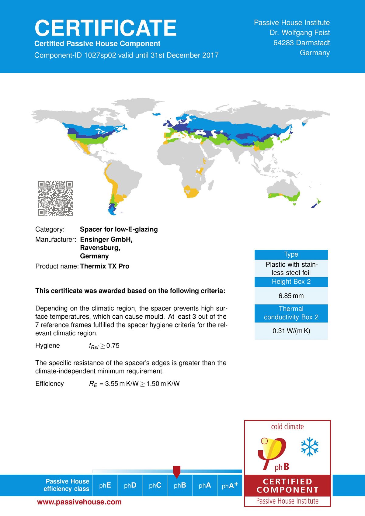 Durante la manifestazione milanese verrà anche reso noto il riconoscimento«Passive House Component» consegnato a Thermix dal Passive House Institute, l’ente di certificazione privato che opera a livello globale. I parametri termici testati offrono un supporto importante e affidabile alla pianificazione per edifici ad elevata efficienza energetica, avvalorati dall’utilizzo di software specifici. Thermix risulta pertanto del tutto idoneo per case passive e a basso consumo energetico in zone climatiche sia calde che fredde.