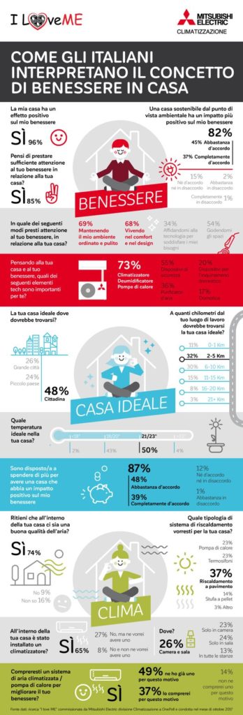 La Divisione Climatizzazione di Mitsubishi Electric ha presentato i risultati della ricerca «I love ME» che ha indagato il rapporto tra gli italiani e il benessere in casa per fotografare lo stato dell’arte e offrire agli addetti ai lavori informazioni su tendenze e caratteristiche della casa, secondo le aspettative dei loro abitanti.