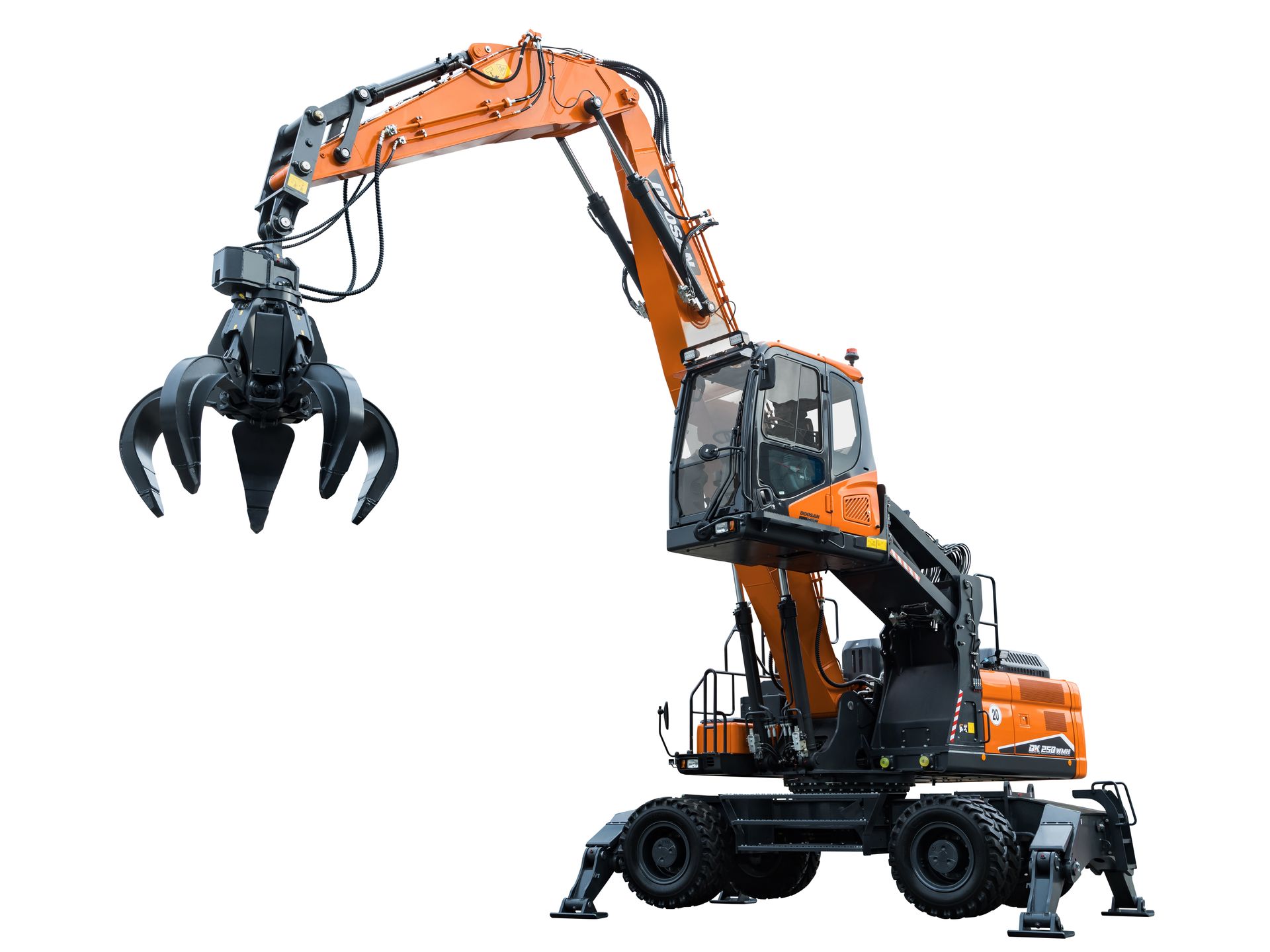 Entrambi sono stati sviluppati in continuità della lunga esperienza Develon sugli escavatori gommati di cui Develon è leader a livello mondiale e sono stati progettati per affrontare i compiti più gravosi in una vasta gamma di applicazioni di selezione e movimentazione di materiali, come movimentazione di rottami metallici e altri rifiuti solidi, raccolta differenziata e riciclo, demolizione e applicazioni forestali. In quanto tali, entrambe le macchine sono quindi provviste di carro HD e stabilizzatori anteriori e posteriori e di braccio e bilanciere specificamente progettati per la movimentazione di materiali, con l’aggiunta di una protezione in acciaio sull’avambraccio per salvaguardare le tubazioni ausiliarie e fornire un appoggio del braccio in fase di trasporto.