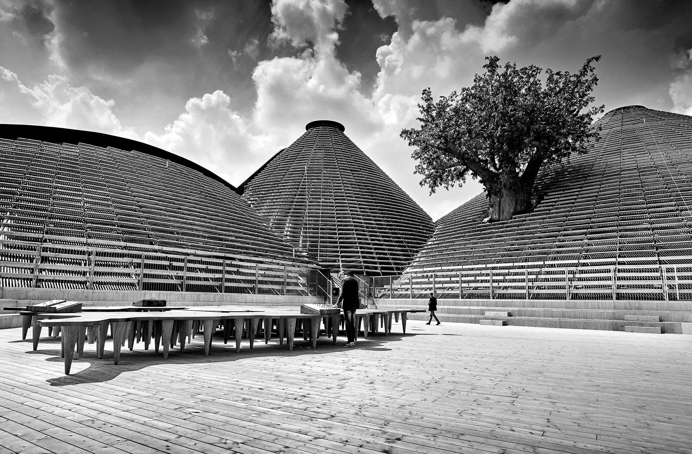 Per Expo 2015 la struttura Agorà è una libera interpretazione del pagliaio costruito con 12 elementi tutti uguali in legno.