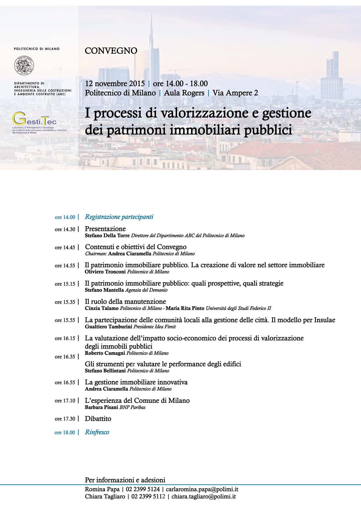 Il convegno, che si tiene a Milano il 12 novembre prossimo (dalle 14 alle 18) presso l’aula Rogers del Politecnico di Milano>> in via Ampere 2, vuole presentare alcune iniziative di valorizzazione-dismissione di compendi di immobili pubblici e contemporaneamente discutere e riflettere sulle modalità-attività basilari che devono essere svolte per ottenere successo nei processi di valorizzazione di patrimoni immobiliari pubblici. Il coinvolgimento nel convegno dell’Agenzia del Demanio avviene in un momento nel quale l’attività ed il ruolo dell’agenzia sono in fase di rilancio, visti gli obiettivi del Governo in tema di immobili pubblici e la grave situazione attuale di bassa redditività del patrimonio immobiliare pubblico a fronte di costi non conosciuti ma crescenti.