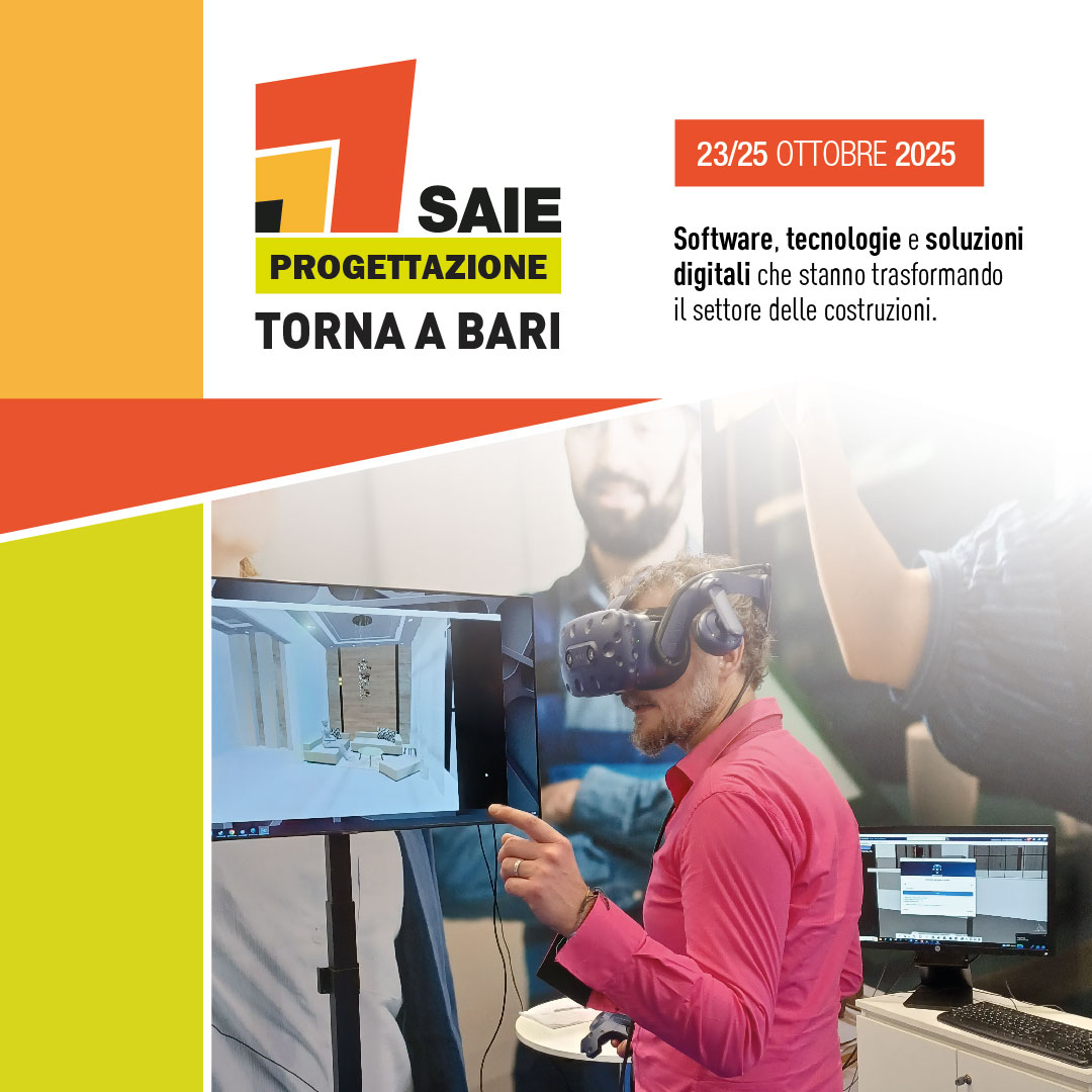 A questo proposito, il settore Progettazione e Digitalizzazione di Saie Bari 2025 (Nuova Fiera del Levante, 23/25 ottobre) sarà proprio il focus dedicato alla digitalizzazione rappresentato da un’area espositiva, da piazze tematiche dimostrative e da iniziative specifiche in cui produttori e rivenditori di software e hardware potranno incontrare professionisti che cercano soluzioni per rendere la progettazione più efficiente e sostenibile e ottenere un supporto per una più accurata gestione di edifici e infrastrutture.