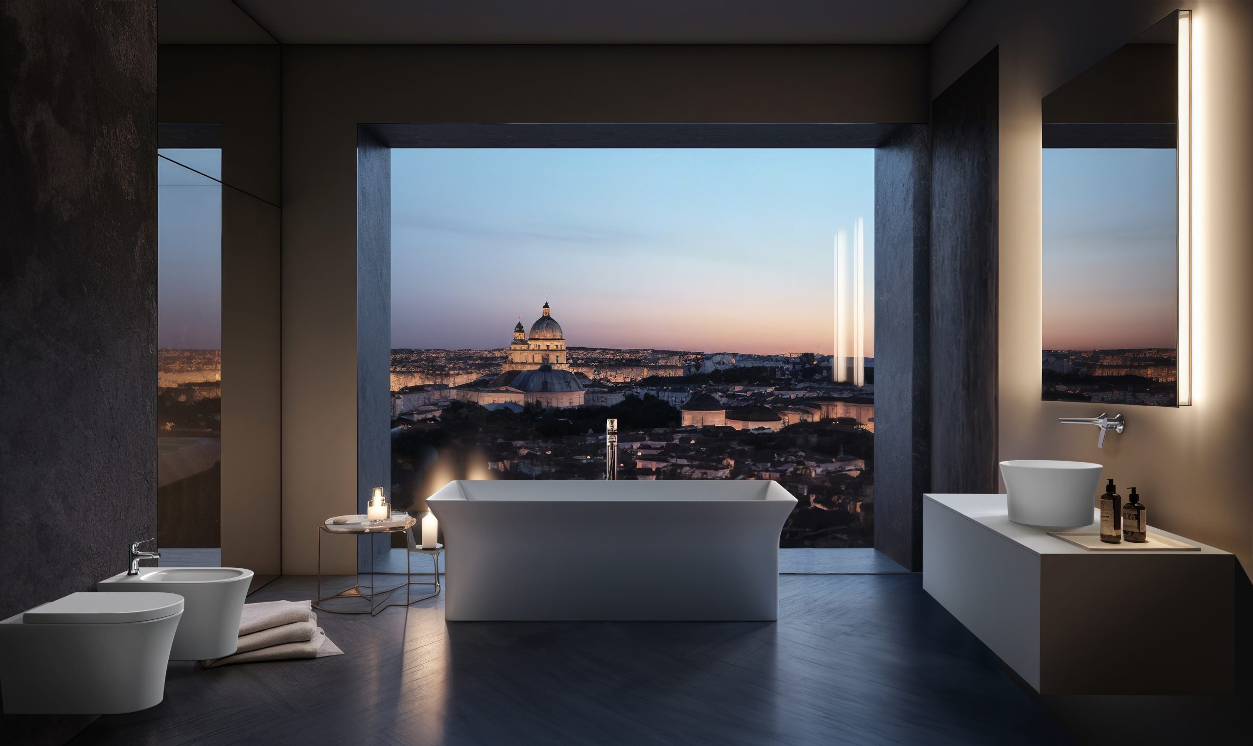 Come pezzo forte, la vasca free-standing domina lo spazio in ogni bagno, ma richiama ancora l’eleganza sobria di uno stile di vita italiano rilassato.