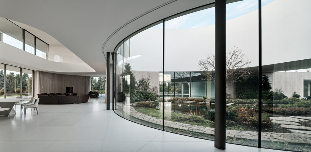 Il concept prende spunto proprio da questo “capovolgimento” nello svolgimento di un progetto residenziale: non il giardino intorno all’abitazione, ma l’abitazione attorno al giardino.