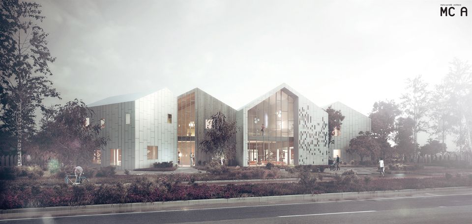 La scelta del tetto a falde, forma-simbolo dell’abitazione, comporta un’associazione alla casa, qualità importante per comunicare sicurezza ai ragazzi che la abiteranno.