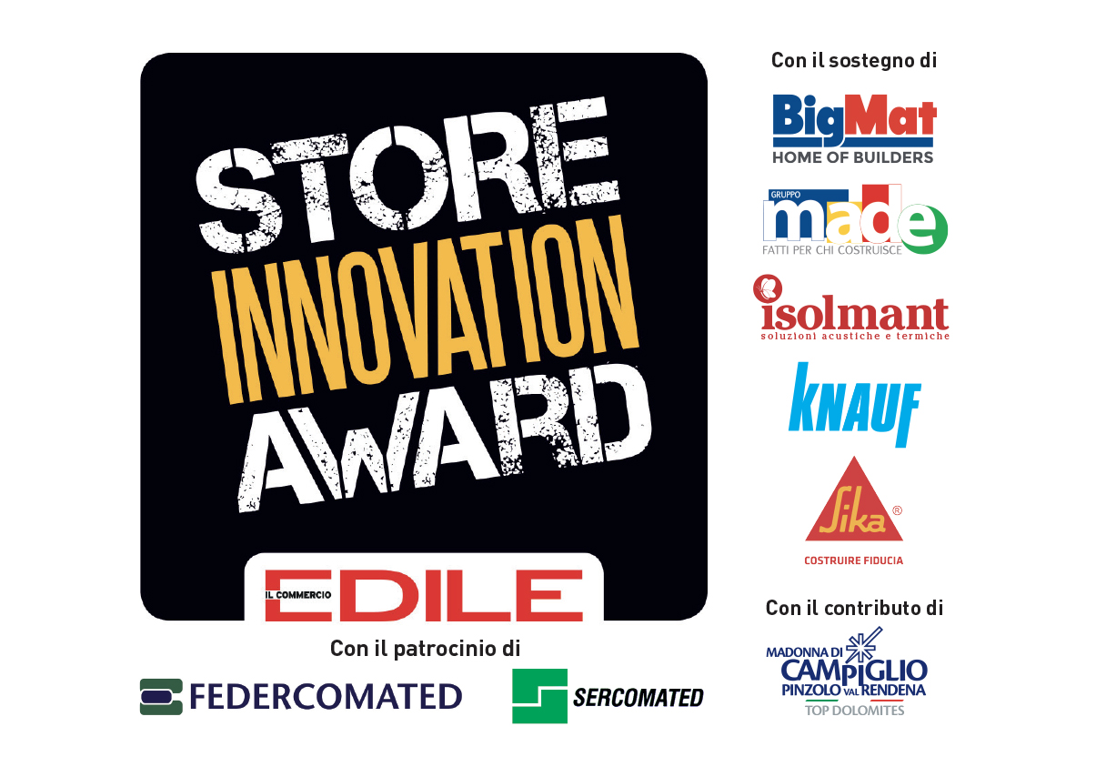 Il commercio edile lancia la prima edizione di Store Innovation Award, il contest che, con il patrocinio di Federcomated e Sercomated, il sostegno di BigMat, Gruppo Made, Isolmant, Knauf e Sika e il contributo dell’Azienda per il Turismo Madonna di Campiglio Pinzolo Val Rendena, è riservato ai distributori di materiali, finiture, accessori e attrezzature per l’edilizia e l’architettura e premia i punti vendita indipendenti con la maggiore capacità di innovazione.