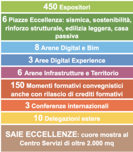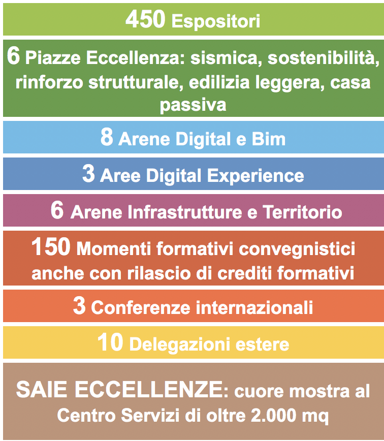La nuova edizione di SAIE si presenta ai visitatori con una forte carica di interattività e un invito diretto alla sperimentazione con i laboratori digitali, le aree dimostrative, le arene gestite dalle aziende protagoniste, le piazze tematiche, gli sportelli informativi per capire e toccare con mano i processi e le prassi operative.