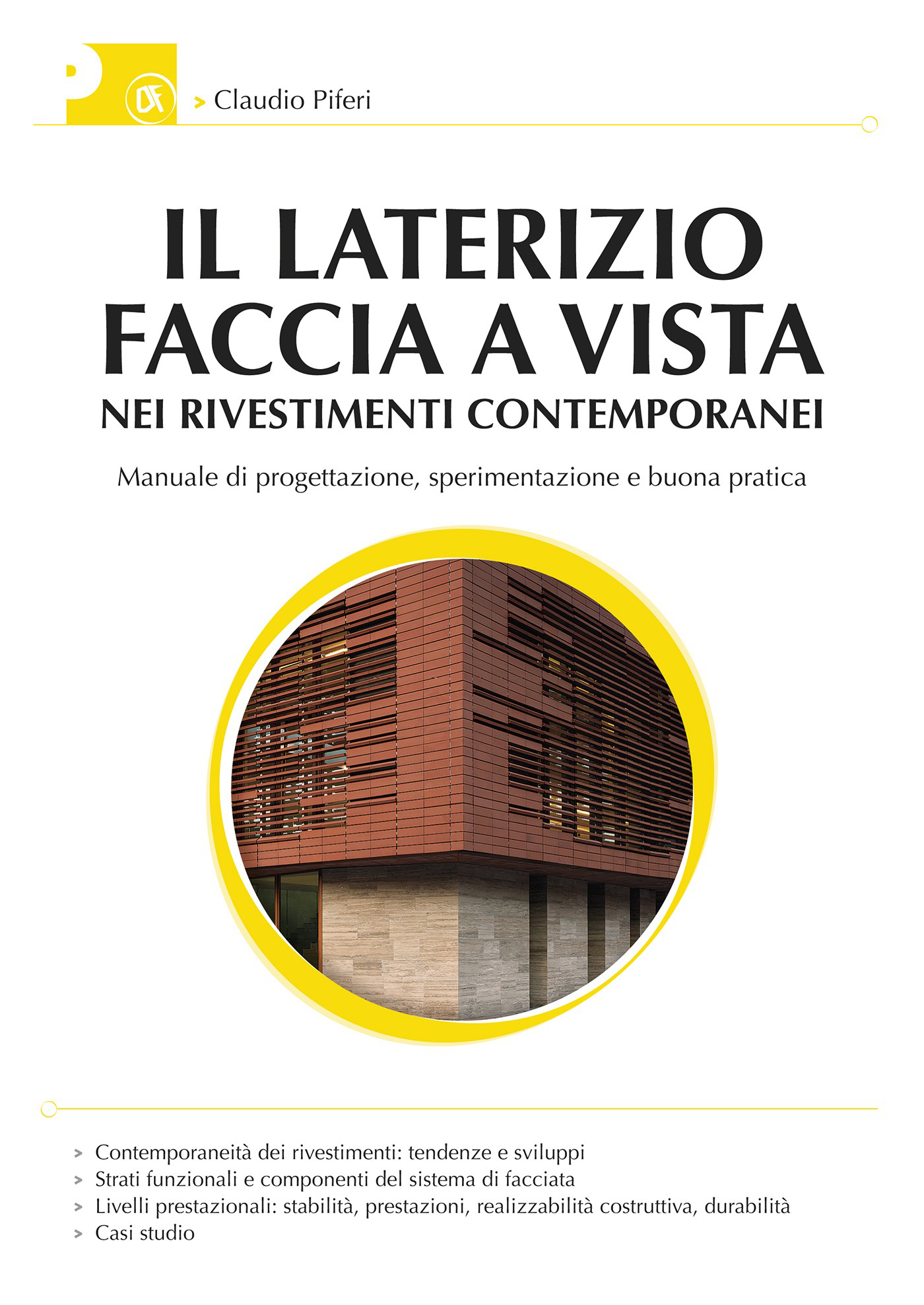 laterizio-facciavistaDel sistema di schermo di facciata con rivestimento in laterizio, il volume specifica configurazioni morfologiche, materiali e dimensionamento; funzionamento tecnologico-prestazionale, progetti, sperimentazione e buona pratica.