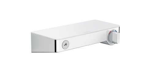 ShowerTablet Select300 è l’ultima novità di Hansgrohe: un nuovo miscelatore termostatico esterno con tecnologia Select per selezionare sia il flusso che l’erogazione dell’acqua direzionandola o alla doccetta o al gruppo rubinetteria tramite un pulsante. Situato sulla parte anteriore della rubinetteria, il tasto Select è semplice e intuitivo come un interruttore, per aprire e chiudere l’acqua con un clic.