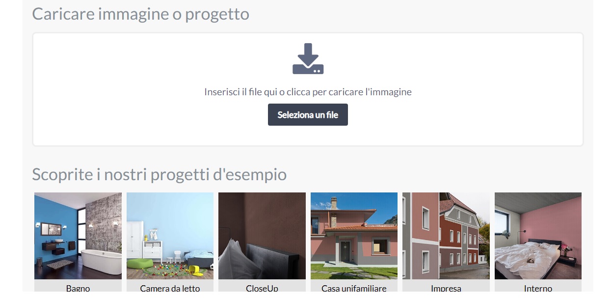 • Il primo passo è caricare un’immagine della facciata, dell’edificio, della parete o dell’ambientazione che si desidera configurare.