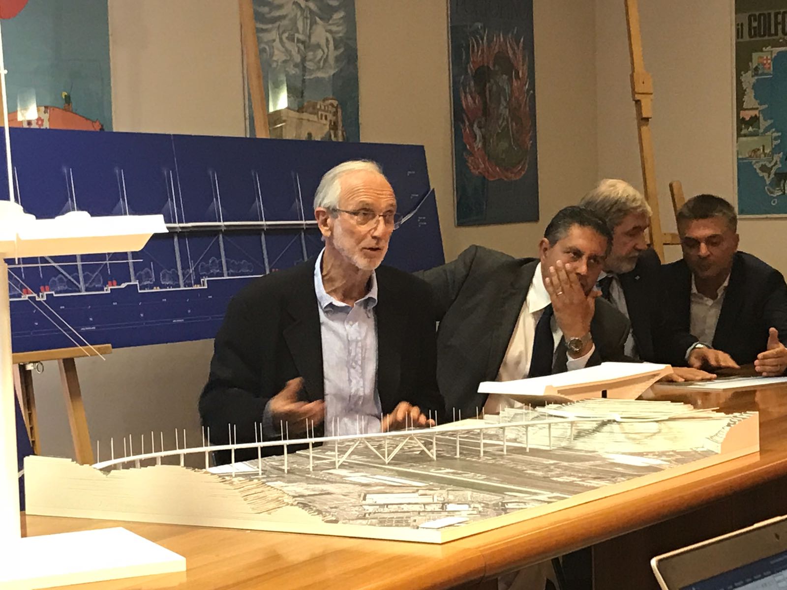 L’incontro in Regione Liguria alla presenza del governatore Giovanni Toti, del Sindaco di Genova Marco Bucci, dei vertici di Fincantieri con l’ad Giuseppe Bono e di Autostrade con l’ad Giovanni Castellucci con l’architetto Renzo Piano è stato richiesto affinché l’architetto illustrasse la sua idea di ponte che ha donato alla città, dopo essere stato chiamato, il giorno dopo la tragedia del 14 agosto, dal governatore e dal Sindaco di Genova. Piano in Regione ha portato i suoi modelli e i bassorilievi con i plastici e i disegni per illustrare alle Istituzioni il suo modello di ponte.