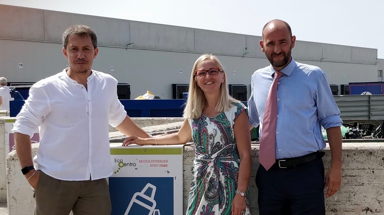 Michele Ciotti (PVC Forum Italia), Michela Biolcati (Assessore all’Ambiente del Comune di Aprilia) e Stefano Cicerani (Amministratore Unico Progetto Ambiente Spa)