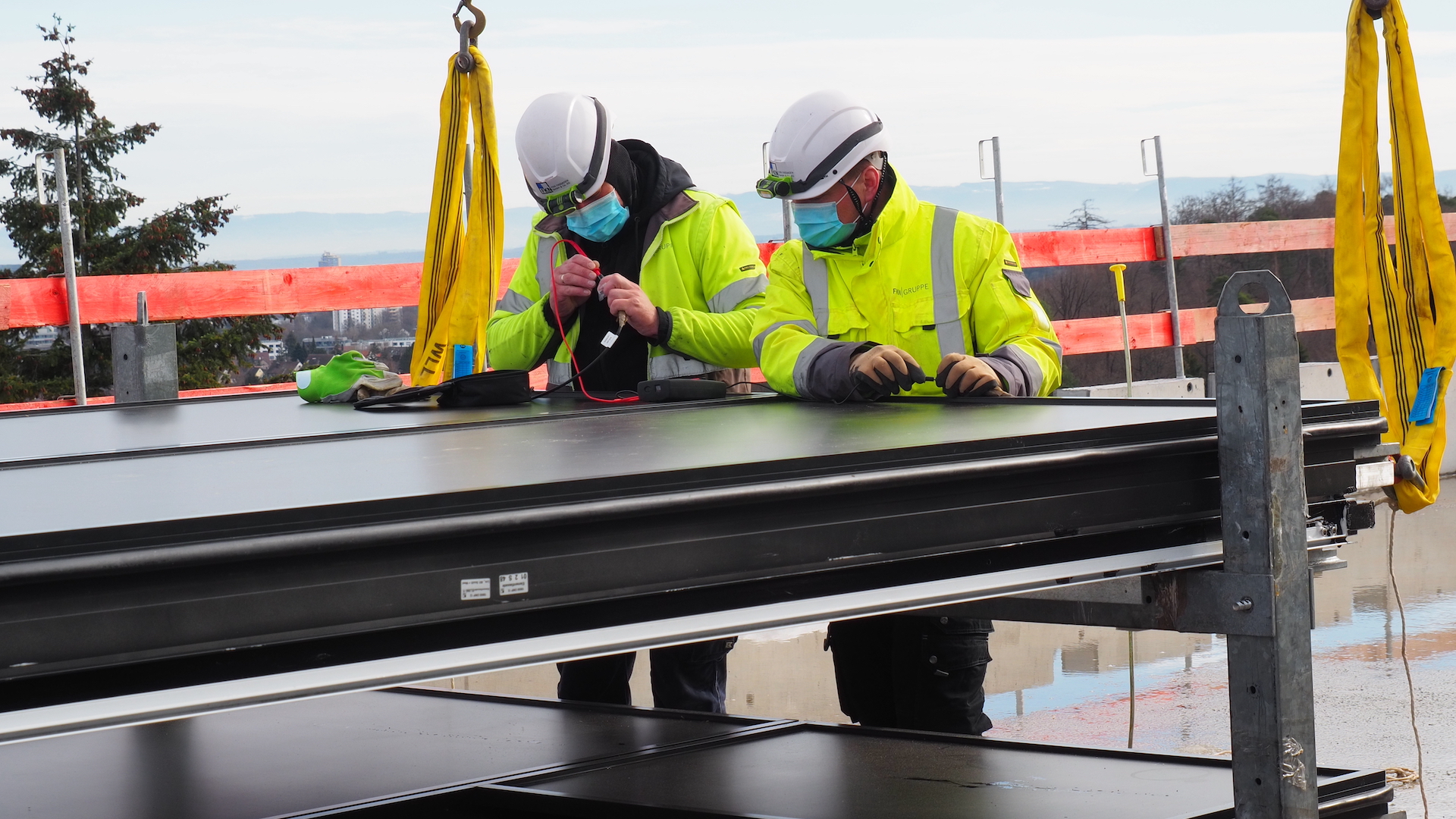 (L’installazione di un pannello di facciata e-coFace. Foto di Drees & Sommer)