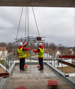 (Fase di installazione dei moduli impiantistici interni. Foto di Drees & Sommer)