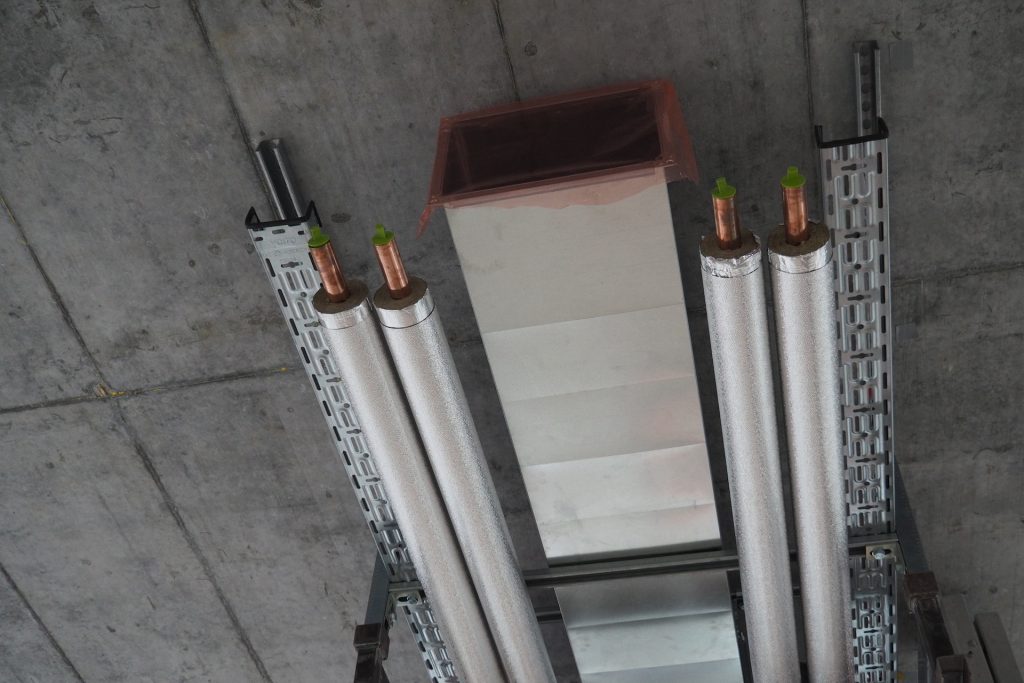 (I moduli impiantistici posati all’intradosso della soletta. Foto di Drees & Sommer)