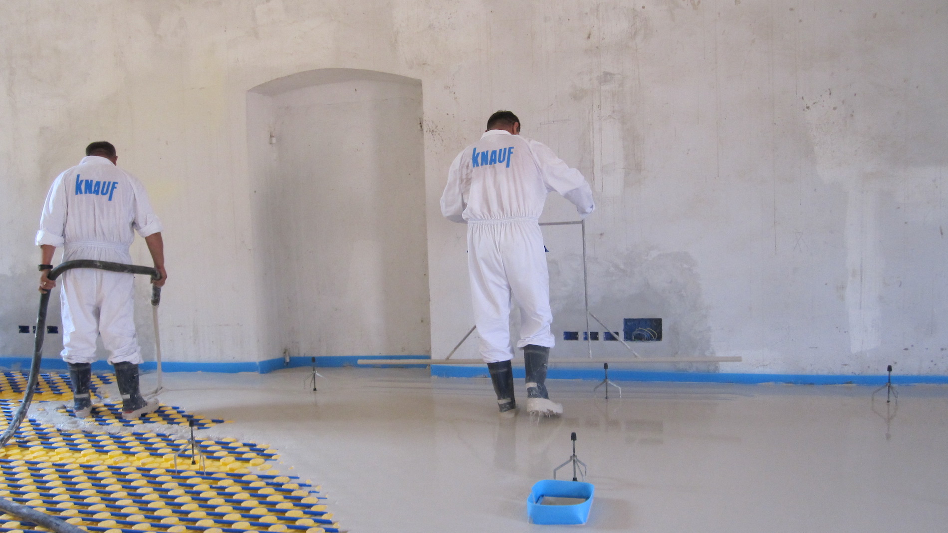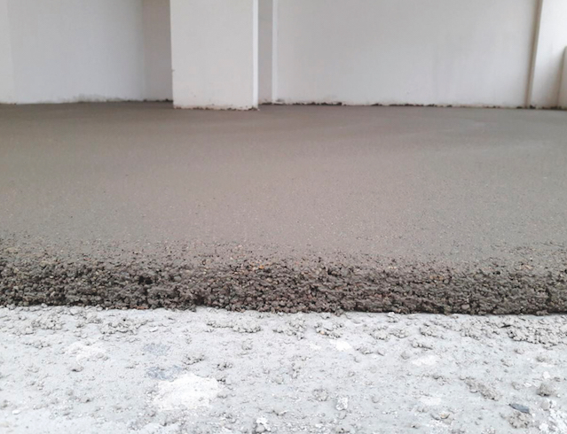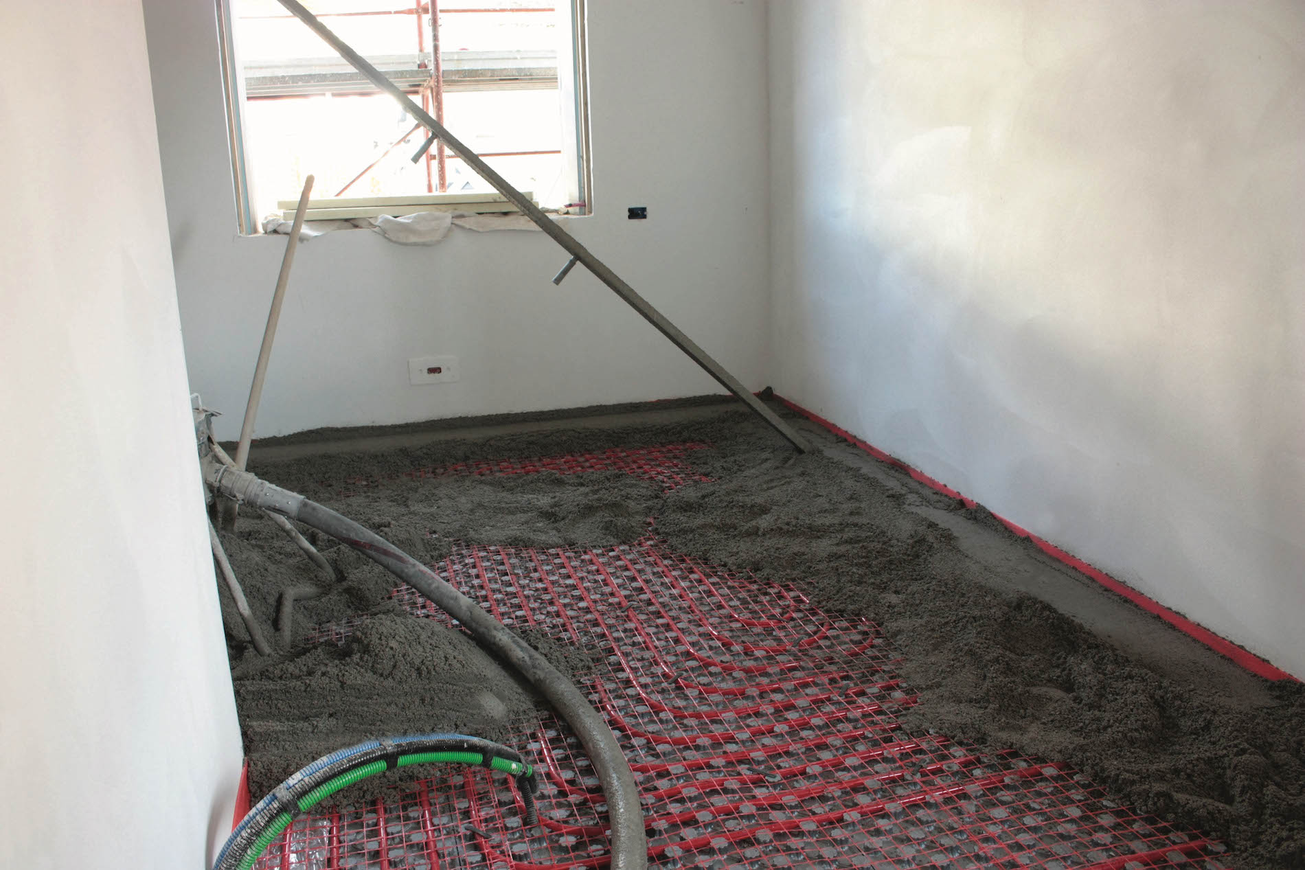 Il sottofondo viene posato in opera e si presenta come un prodotto fluido premiscelato; caratteristiche fondamentali sono la facilità nella posa e la composizione. La scelta dello spessore di questo strato dipende dall’intera stratigrafia del solaio, in quanto è necessario assicurare un minimo spessore tra la struttura del solaio e la pavimentazione, bilanciando gli elementi intermedi.
