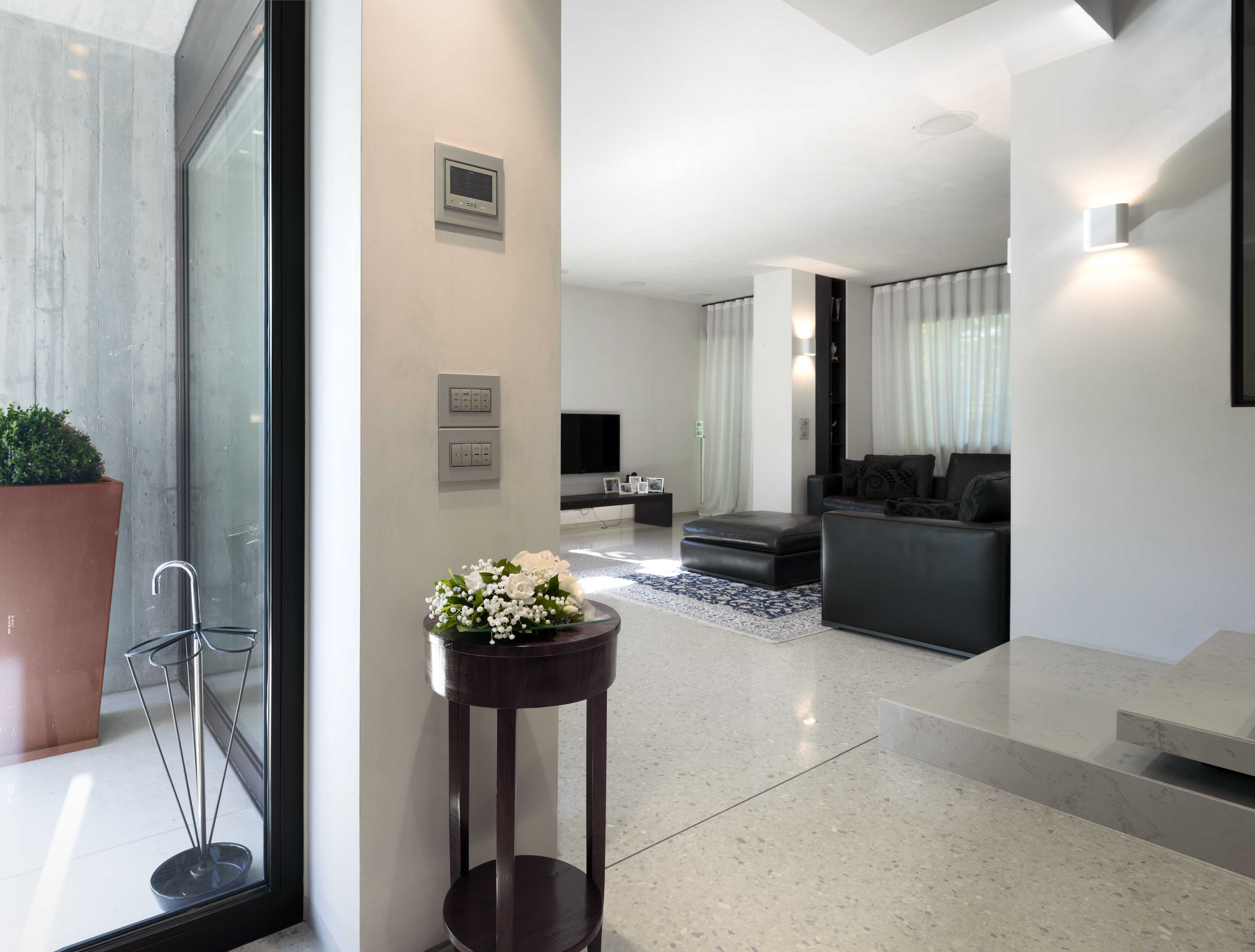 Attraverso il loro display è inoltre possibile richiamare uno dei diversi scenari in precedenza impostati: come lo scenario ‘ingresso’, che alza tutte le tapparelle preparando la casa ad una magnifica accoglienza, o lo scenario ‘uscita’ che, al contrario, spegne tutte le luci, porta il clima al livello di stand-by, e abbassa tutte le tapparelle, o ancora, lo scenario ‘vacanza’ quando i padroni di casa si trovano lontani per diversi giorni, il sistema simula la loro presenza in casa, accendendo in modo alternato le luci dei vari ambienti, sia all’interno che all’esterno dell’abitazione, per scoraggiare eventuali malintenzionati.