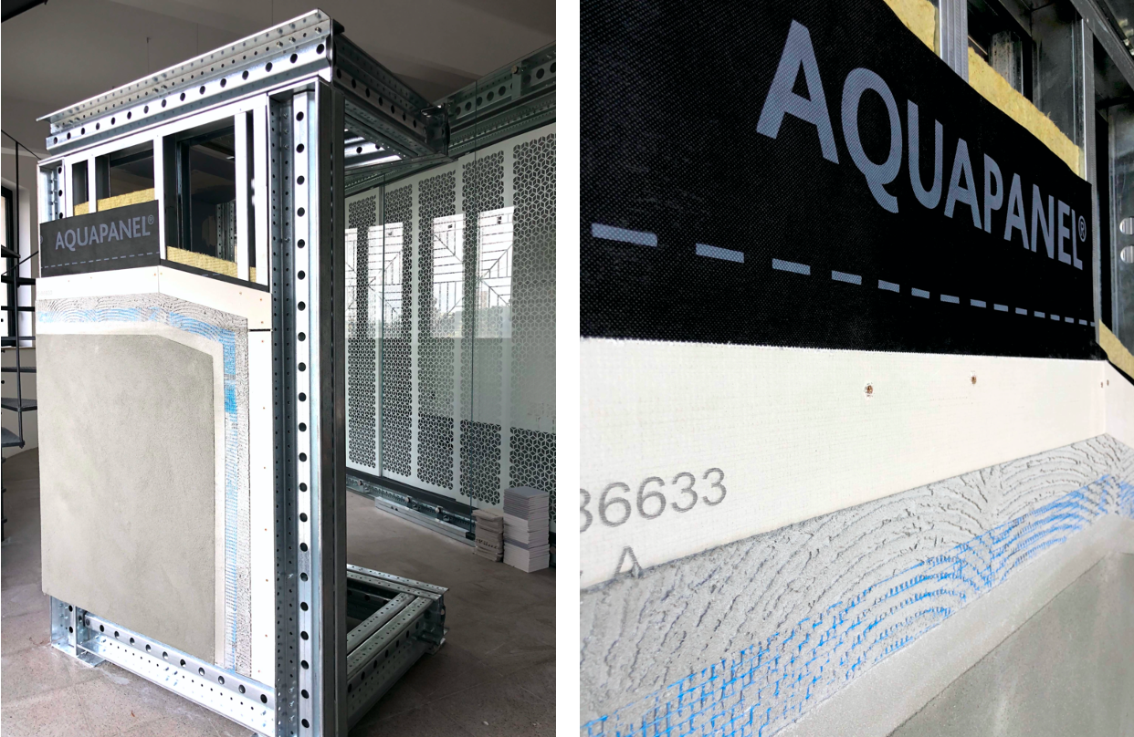 A seguire Francesco Fiorindi, Ingegnere di Knauf Italia, ha spiegato l’integrazione perfetta dell’involucro Aquapanel con le soluzioni in acciaio, le possibilità dell’isolamento termico e le caratteristiche ecosostenibili dei pannelli.