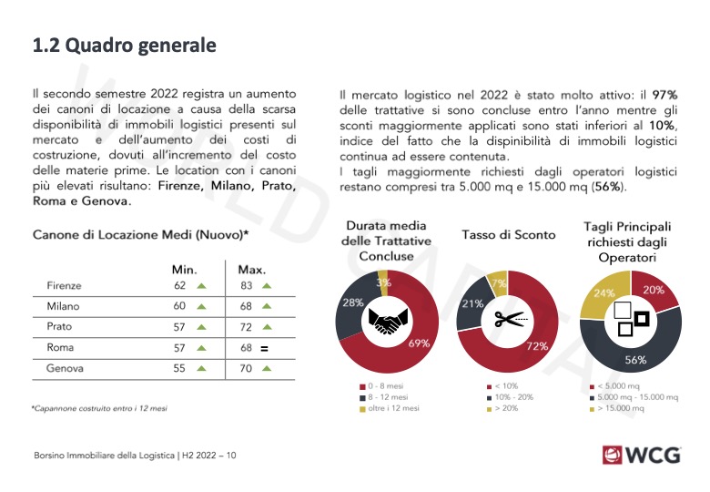 Le considerazioni del manager Faini si legano alla pubblicazione del nuovo “Borsino Immobiliare della Logistica – H2 2022”, a cura del Dipartimento di Ricerca di Wcg in collaborazione con Nomisma, relativo all’andamento del secondo semestre dello scorso anno. La logistica si conferma un asset immobiliare di grande interesse e in continua crescita.
