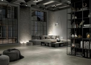 Un pavimento in grès porcellanato studiato per interni ed esterni garantisce proprietà antisdrucciolo e di resistenza agli agenti climatici per la particolare superficie esteticamente ispirata al cemento.