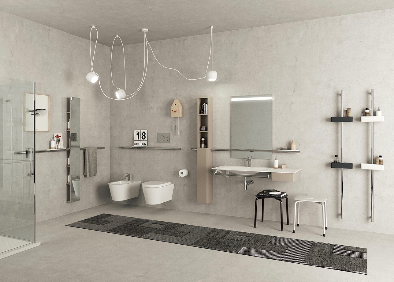 Un design di gusto decisamente contemporaneo caratterizza la famiglia di accessori, maniglie funzionali, piatti doccia, lavabi, sedute e sgabelli proposti da una delle aziende storiche della produzione accessibile in grado, oggi, di fornire collezioni firmate da progettisti di grande mestiere e sensibilità.