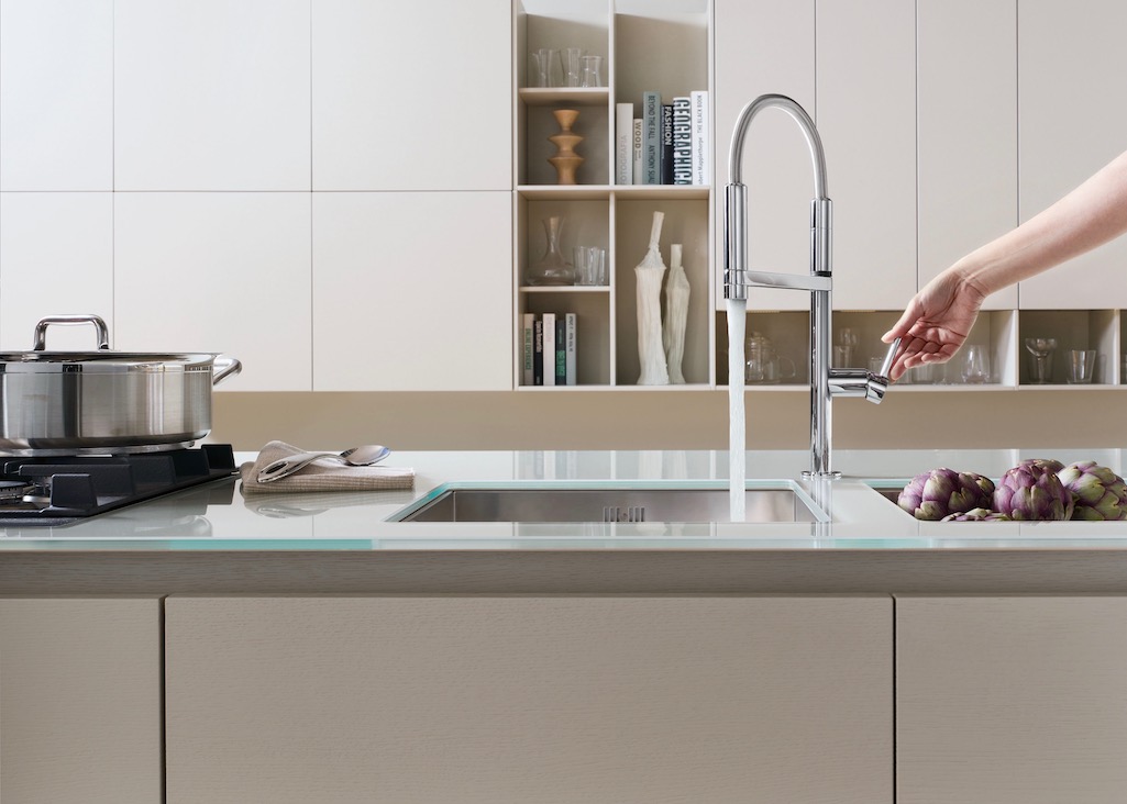 La miscelazione idrica in cucina e professionale può contare su una linea di rubinetti messa a punto per permettere libertà di movimento e raggio d’azione di notevole ampiezza.