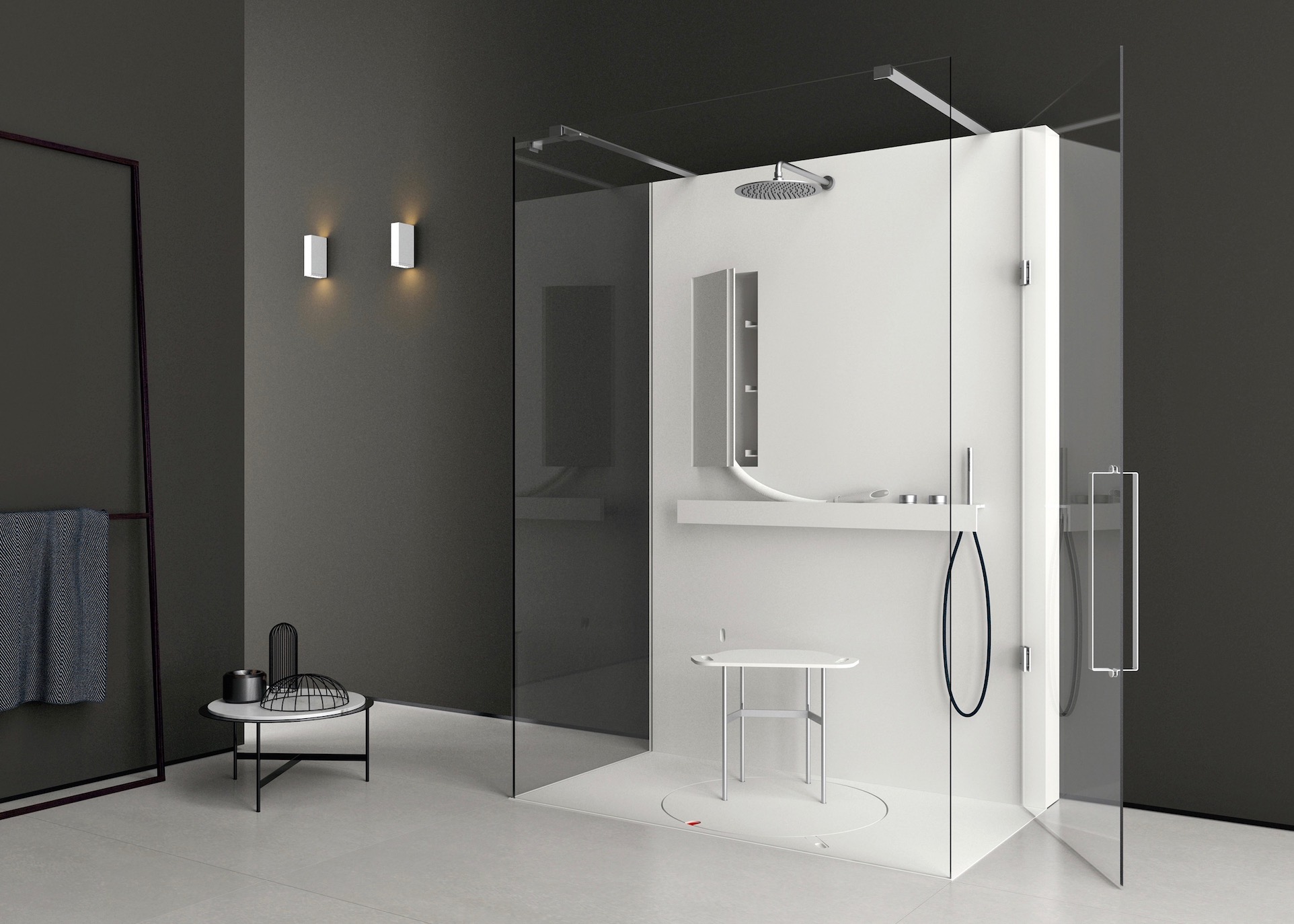 Un un sistema doccia ricco di possibilità di utilizzo anche ad utenti con necessità di assistenza.