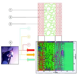 Lo scopo dell’indagine era ancora una volta quello di individuare e mappare l’eventuale presenza di cavità o di elementi di consolidamento presenti nello spessore della muratura [2, 3, 6].