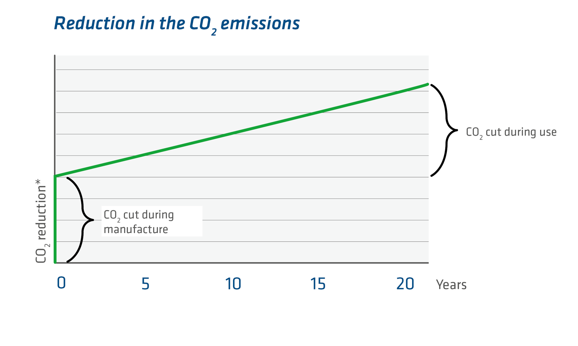 L’utilizzo di poliammide riciclata consente di ridurre del 92% il consumo di combustibili fossili rispetto alla produzione dei profili tradizionali, mentre le emissioni di CO2 scendono del 91% e il consumo di acqua del 78% (Fonte: Dichiarazione ambientale del prodotto Epd-Ibp-14.1, ift Rosenheim).