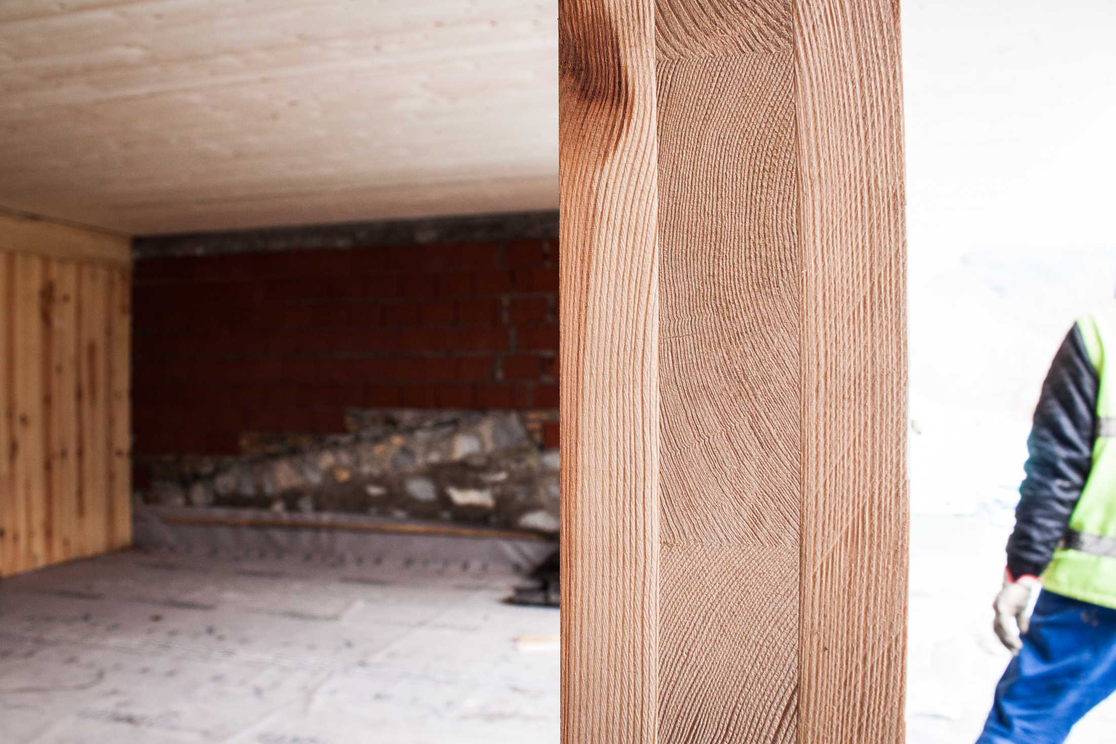 Anche in questo caso il sistema costruttivo X-Lam si è rivelato una scelta vincente sotto molti aspetti. Da un punto di vista strutturale la leggerezza del materiale ha garantito la possibilità di sposarsi alla preesistenza, adagiandosi sulle murature esistenti che divengono memento dichiarato di un passato tradizionale irrinunciabile e di valore, come riconosciuto anche dall’Unesco. Proprio questo aspetto rappresenta un aspetto di estrema rilevanza del progetto, che si sposa con il contesto e dialoga con la natura utilizzando materiali di origine completamente naturale ad altissima efficienza energetica. Un edificio sostenibile che si armonizza con l’ambiente, ne diviene memento e rifugio per poterne godere attraverso le vetrate, affacciati al balcone o immersi nella quiete silenziosa dello studio. Infine la versatilità del sistema costruttivo che ha garantito tempi di esecuzione rapidissimi e la completa integrazione tra le manovalanze dell’impresa locale Incomont sa e quella di Gandelli Legnami srl.