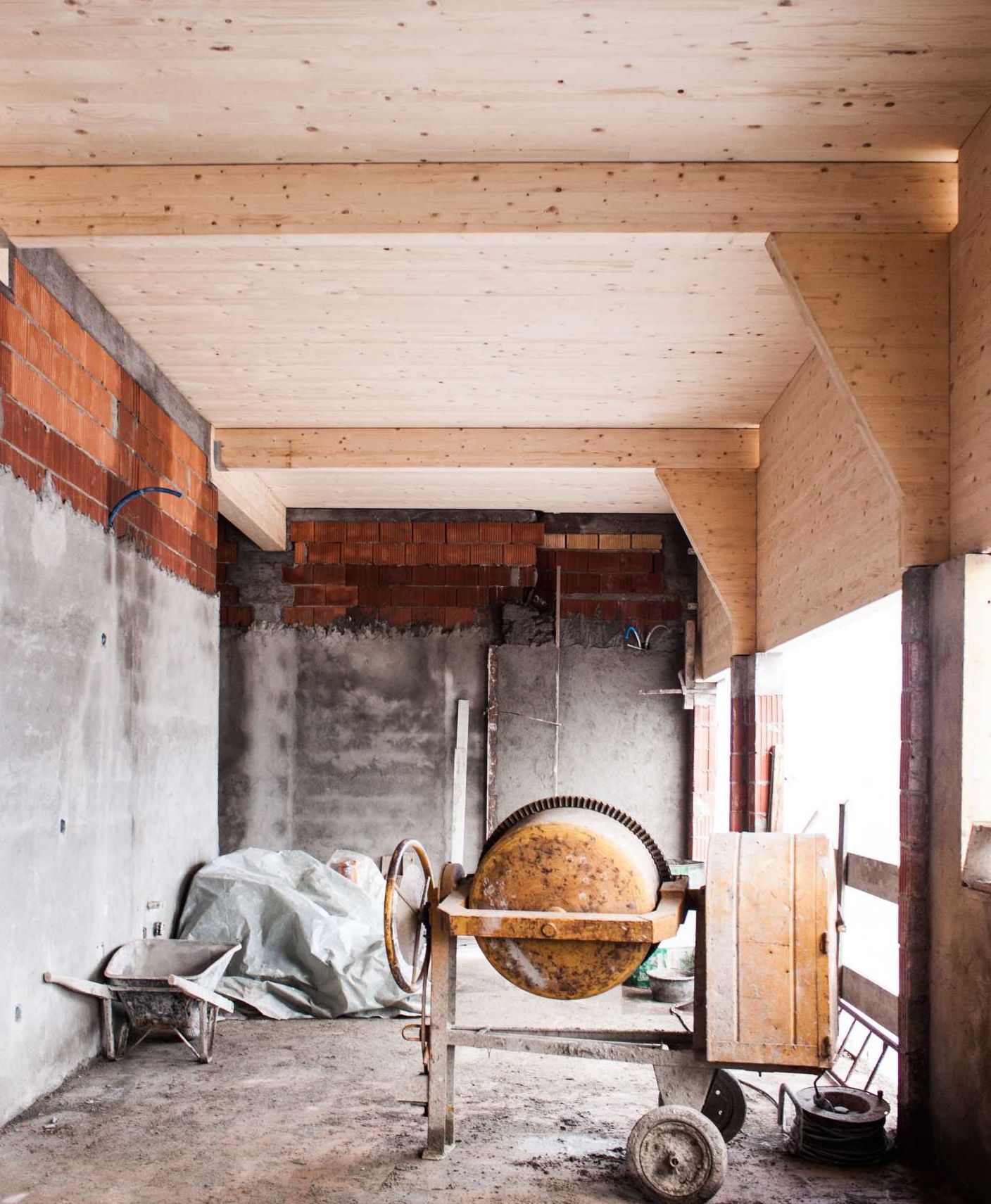 Dal punto di vista costruttivo il complesso nasce come recupero e ampliamento di una preesistenza. Malgrado la posizione defilata rispetto al centro cittadino e alle sue attrattive l’edificio ospitava in precedenza una discoteca, dismessa e abbandonata già prima dell’intervento. Un apparente controsenso se lo si rapporta alle vestigia del fabbricato di piccole dimensioni costruito con sistemi e materiali tradizionali che restano evidenti nel disegno delle facciate anche dopo l’ampliamento, memento e connubio con la nuova tecnica costruttiva del legno strutturale in un felice sposalizio tra materiali naturali.