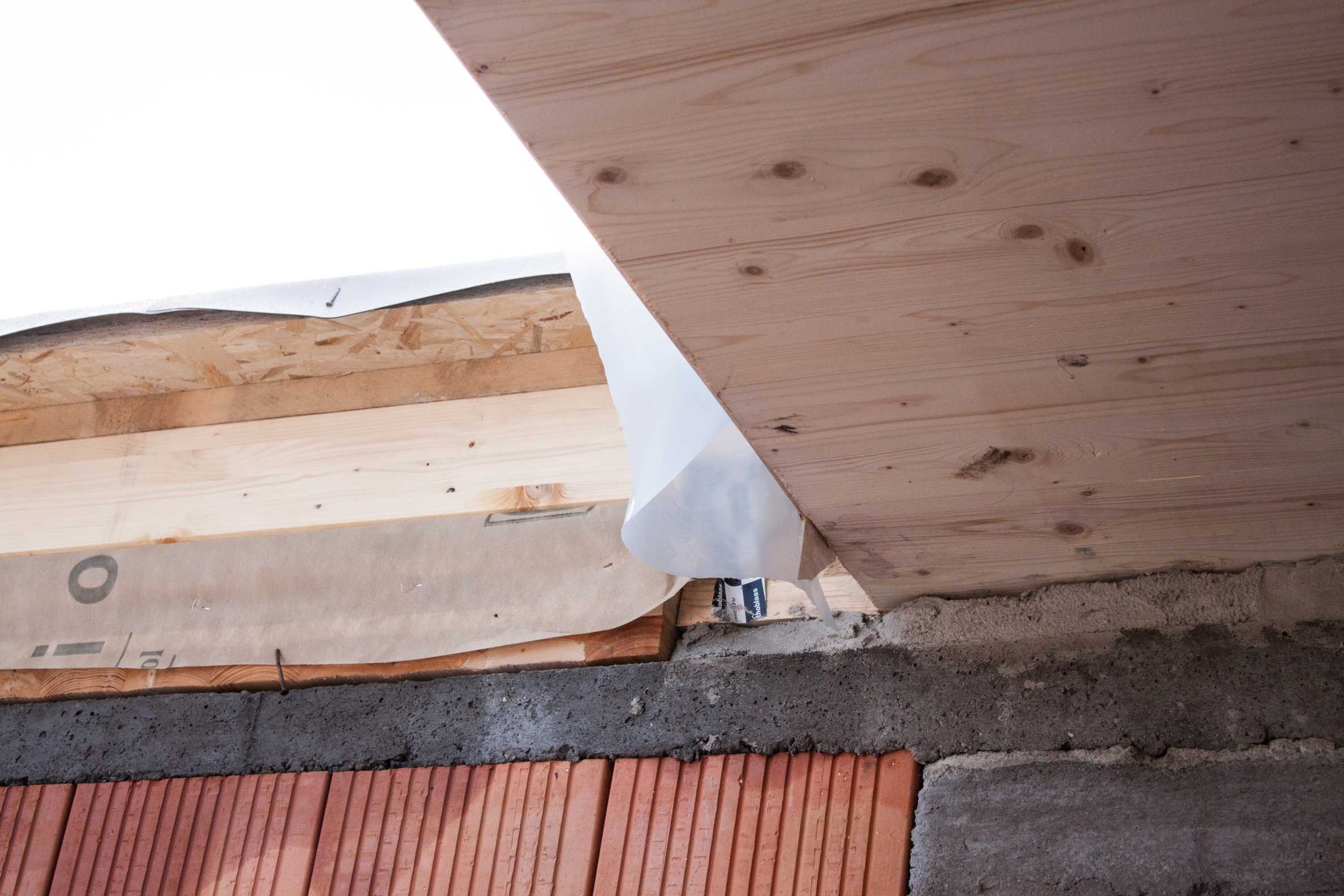 Nella parte superiore delle travi sono stati fissati pannelli Osb sopra i quali è stato steso uno strato di compensazione di 300gr/mq di tessuto non tessuto in polipropilene 100% isotattico e da un manto impermeabile (Sarnafil Ts 77-15) in poliolefine flessibile avente armatura composita in poliestere e fibra di vetro ad alta resistenza. In corrispondenza del volume tecnico del vano ascensore e in corrispondenza del bordo del tetto sono stati realizzati i cosiddetti risvolti, utili a preservare gli ambienti sottostanti dalle infiltrazioni e dalla percolazione di acqua meteorica, realizzati con manto impermeabile sintetico in ‘lega’ di poliolefine flessibile armato in velo di vetro fissati meccanicamente.