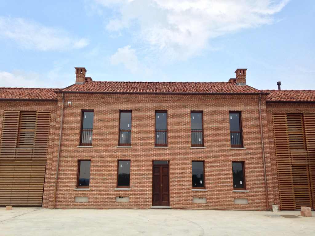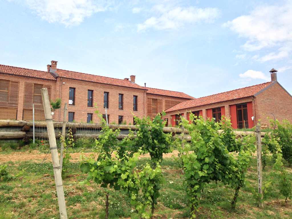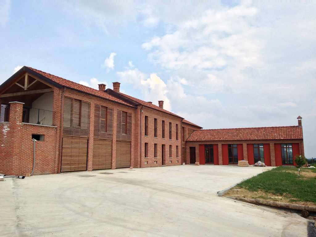 Realizzato dall’impresa Principe Costruzioni di Asti, l’edificio, che riflette la tipica struttura degli edifici rurali ottocenteschi, è caratterizzato da un corpo centrale e da due ali laterali e si eleva per due piani fuori terra scanditi dalle aperture che interrompono ritmicamente la possente facciata coronata da un tetto a falda in coppi su struttura in legno.