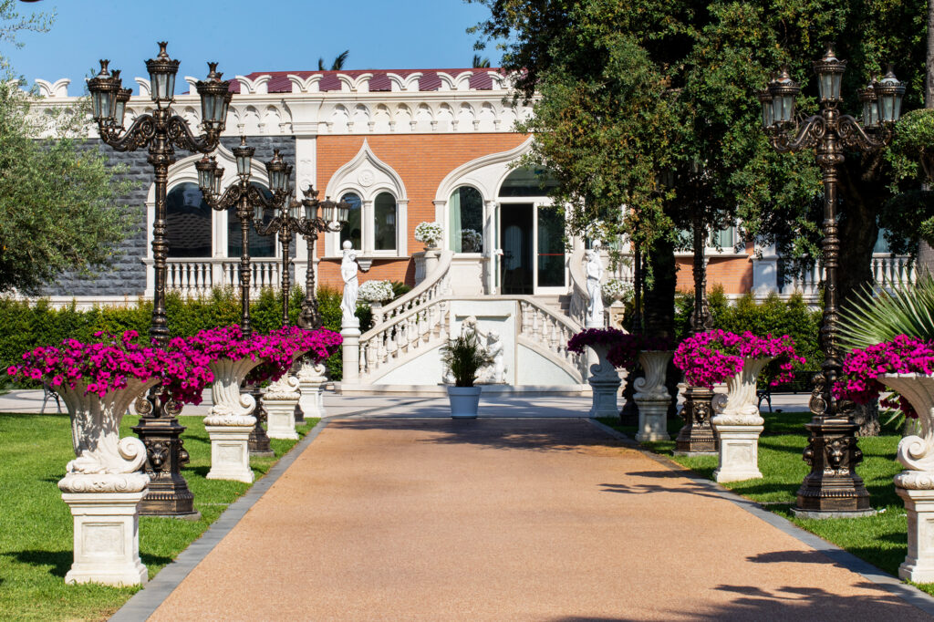 Circondato da un ampio giardino, Castello delle Aci (Acireale) è una location con vista panoramica sul vulcano Etna e sulle acque del mare, un luogo di grande fascino scelta per il giorno del grande sì. In questi casi è importante predisporre ogni ambiente per affrontare serenamente anche un giorno di pioggia, progettando gli elementi strutturali e architettonici nel modo adeguato. I proprietari del Castello delle Aci hanno avviato una collaborazione con Ipm Italia, azienda specializzata nella produzione e posa di pavimento continui in resina per indoor e in graniglia per outdoor. La collaborazione ha previsto la scelta di un rivestimento delle superfici outdoor ultra drenante come Ipm GeoDrena dedicato ai 1100 metri quadri di superficie.