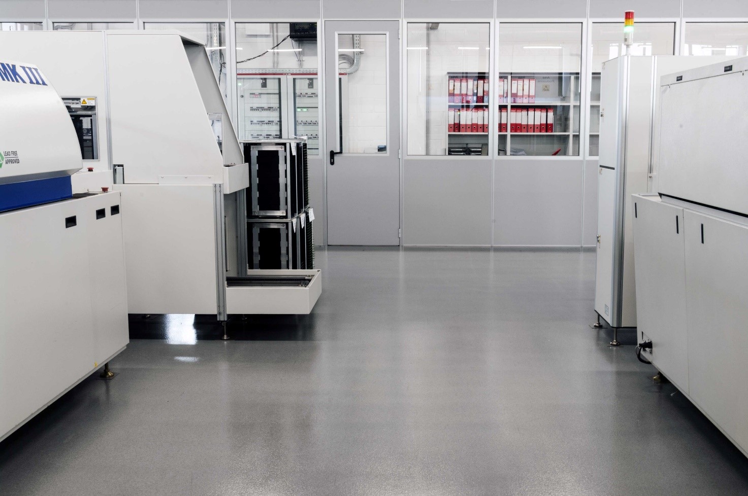 La scelta è ricaduta su Ipm Voltec/Color Mix, il sistema epossidico multistrato studiato e formulato appositamente per gli ambienti industriali e in particolare per le aziende elettroniche e farmaceutiche che necessitano di pavimentazioni dalle proprietà antistatiche: il laboratorio interno di Ipm Italia rilascia certificazione della conducibilità del sistema, che viene eseguita grazie a una strumentazione specifica, costantemente calibrata ed aggiornata.