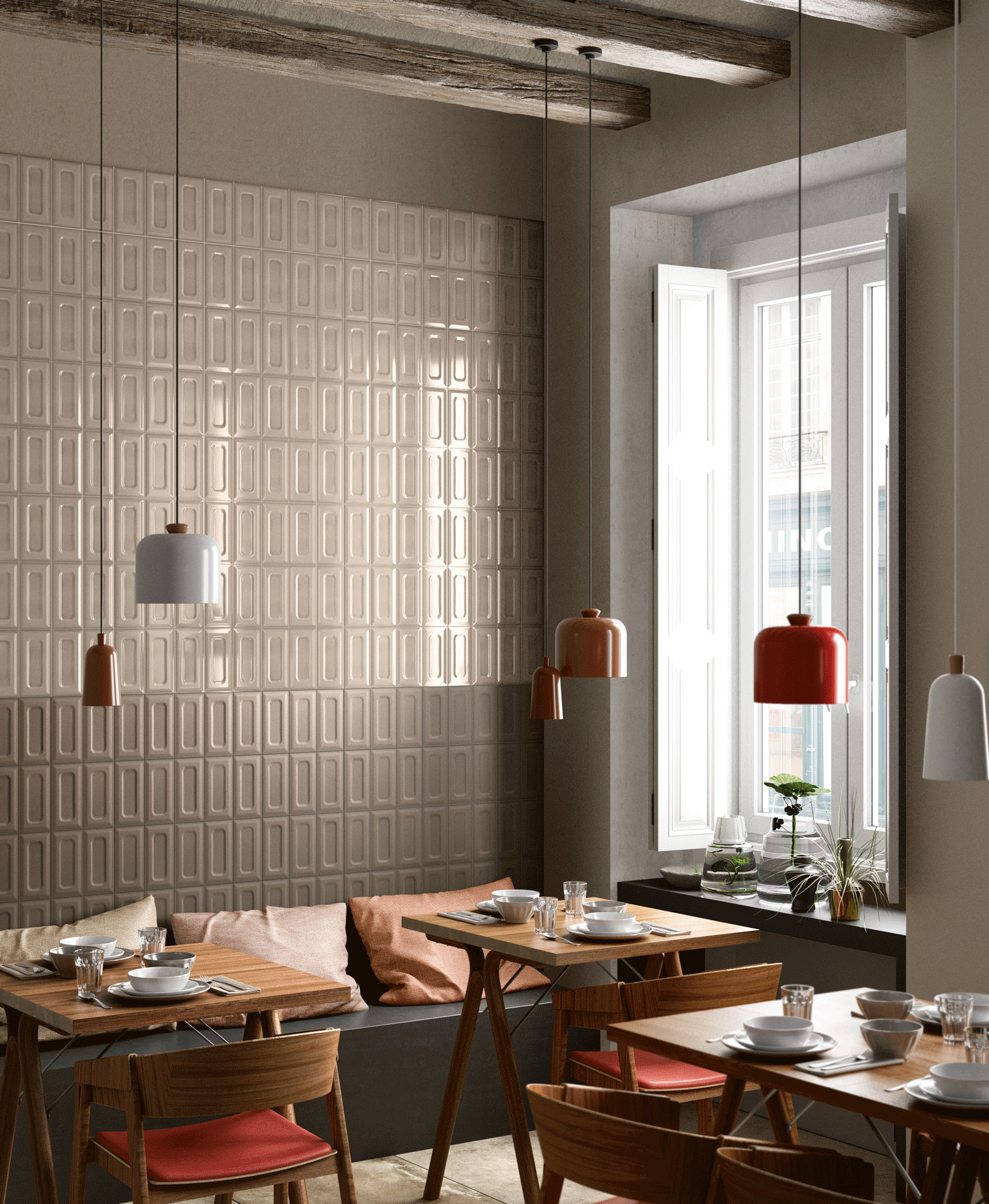 Grazie alle finiture Matt e Lux e alle molteplici possibilità di posa (spessore 8,5 mm), Bowl definisce gli spazi con inediti effetti ottici che regalano tridimensionalità alle pareti per uno stile che si racconta attraverso forme, colori e design.