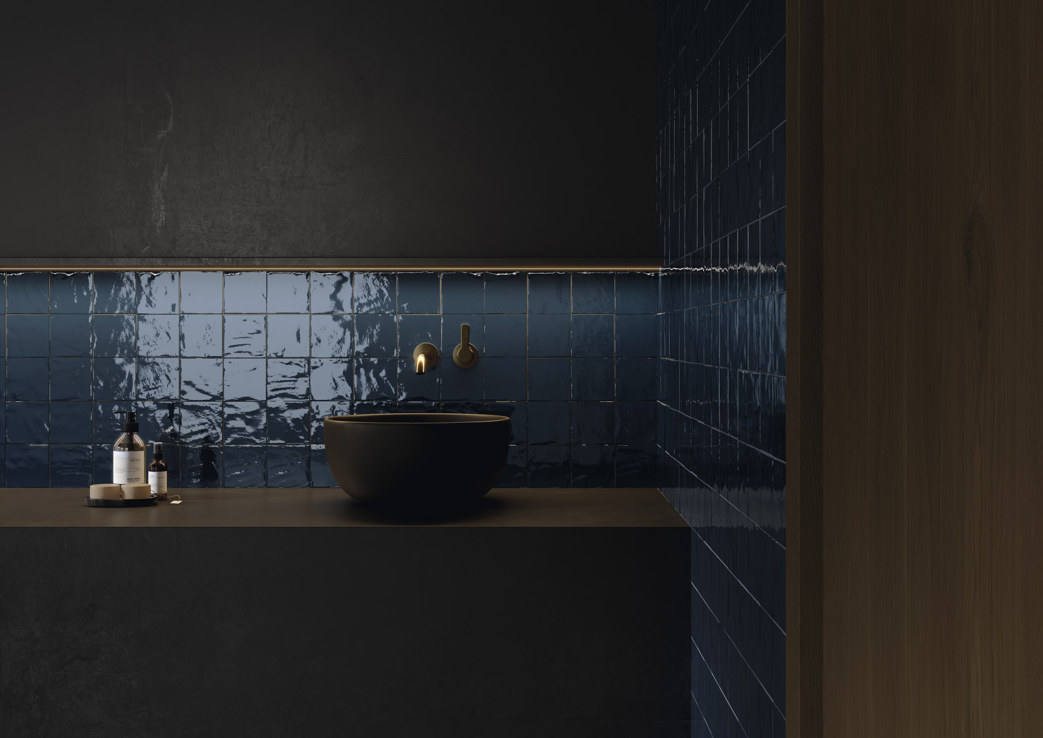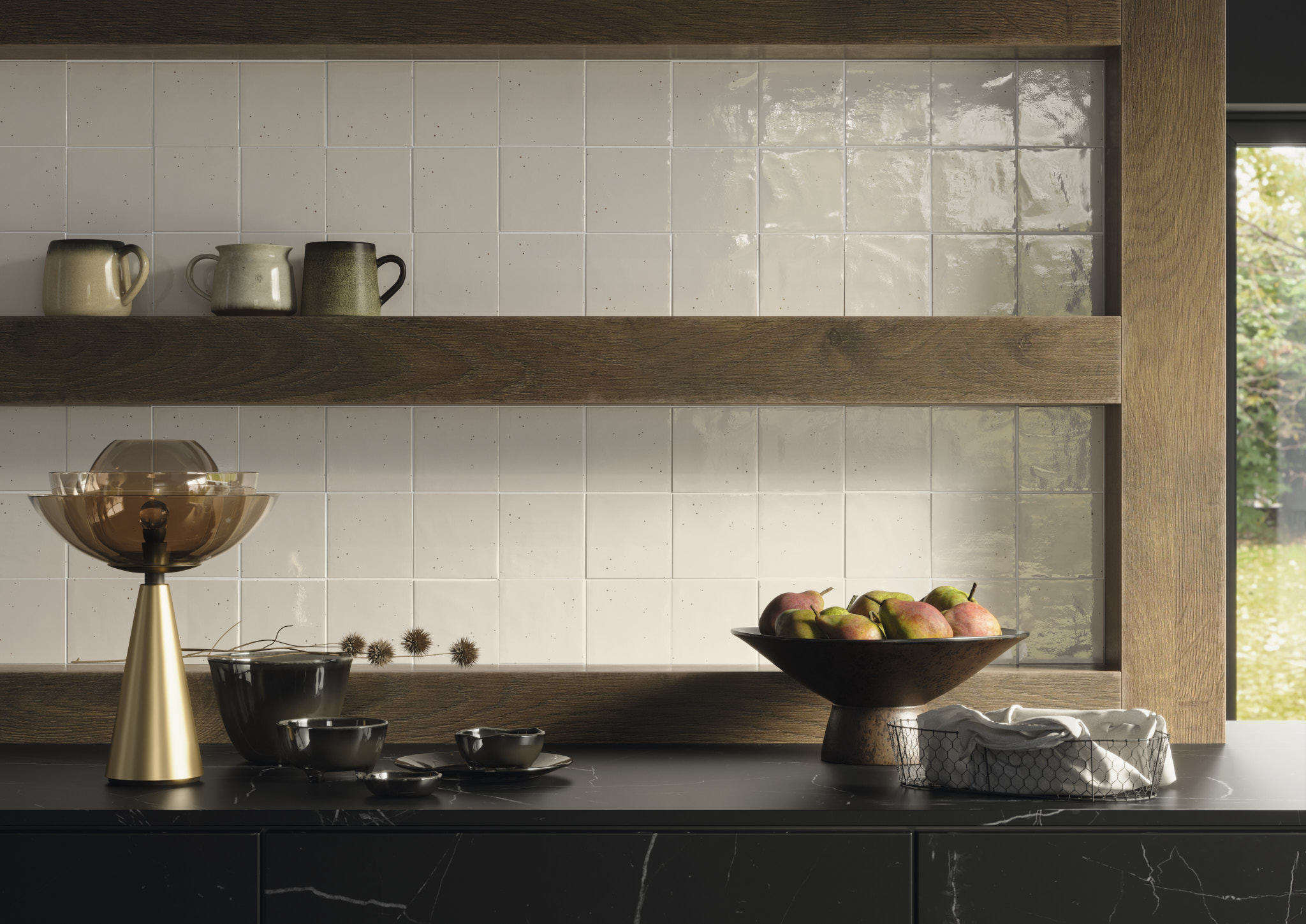I rivestimenti di Dedica sono proposti nel formato 10×10 cm, con finitura Glossy, che cattura la luce in modo morbido, accentuando le declinazioni cromatiche del Bianco Seppia, caldo e avvolgente, del Blu Infinito, profondo e suggestivo, del Rosa Estate, tenue e delicato, e del Verde Pineto, vibrante e naturale.