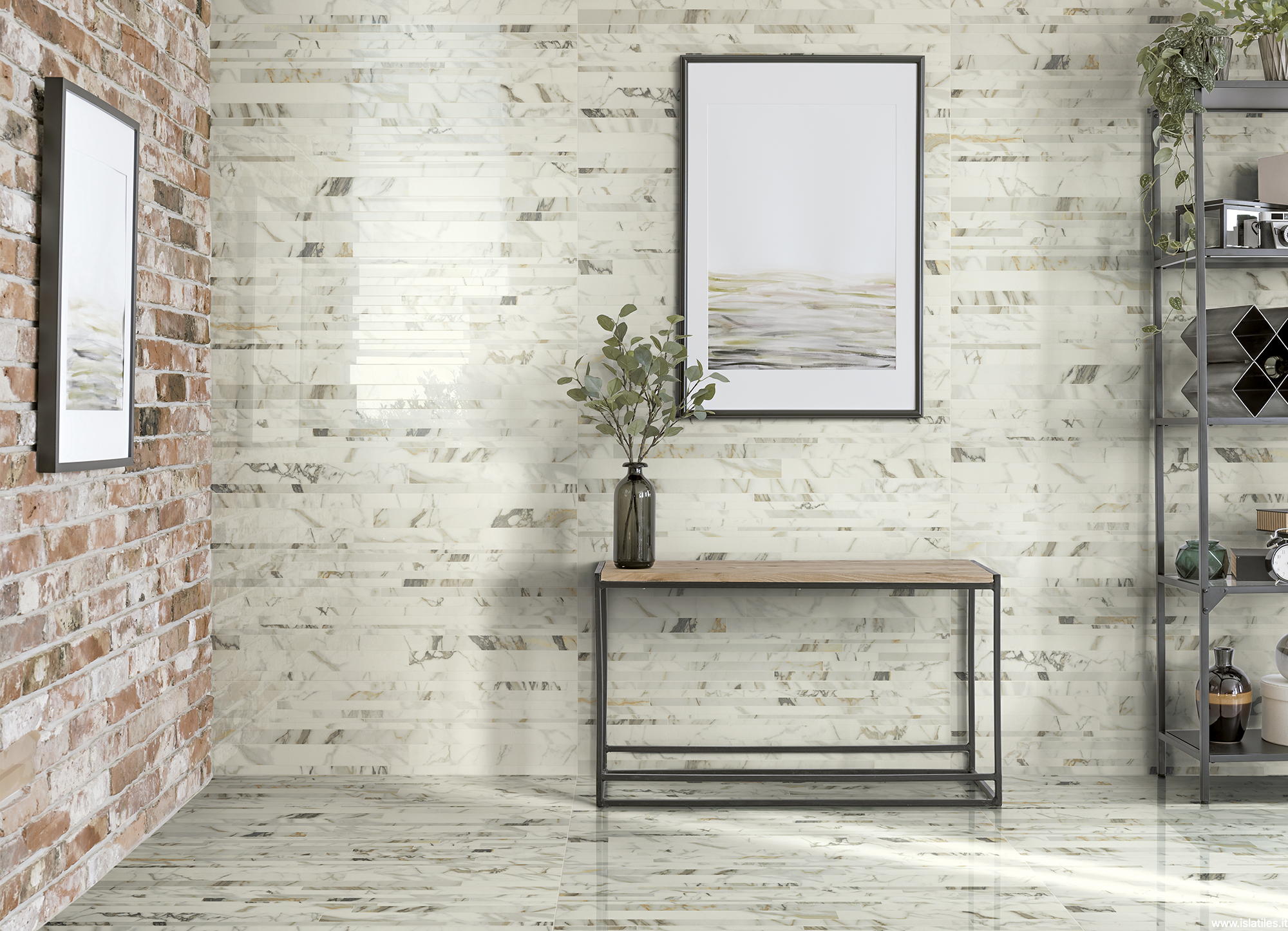 SELEZIONE MARMI intende lasciare un segno durevole a dispetto della caducità delle mode. La nuova collezione di Isla Tiles, dedicata a quella che i Greci definivano pietra splendente, è rivolta a chi cerca una eleganza senza tempo, capace di integrarsi al design contemporaneo come a quello tradizionale. Le venature marmoree diventano un moderno motivo decorativo, “spezzate” nell’originale effetto brick.